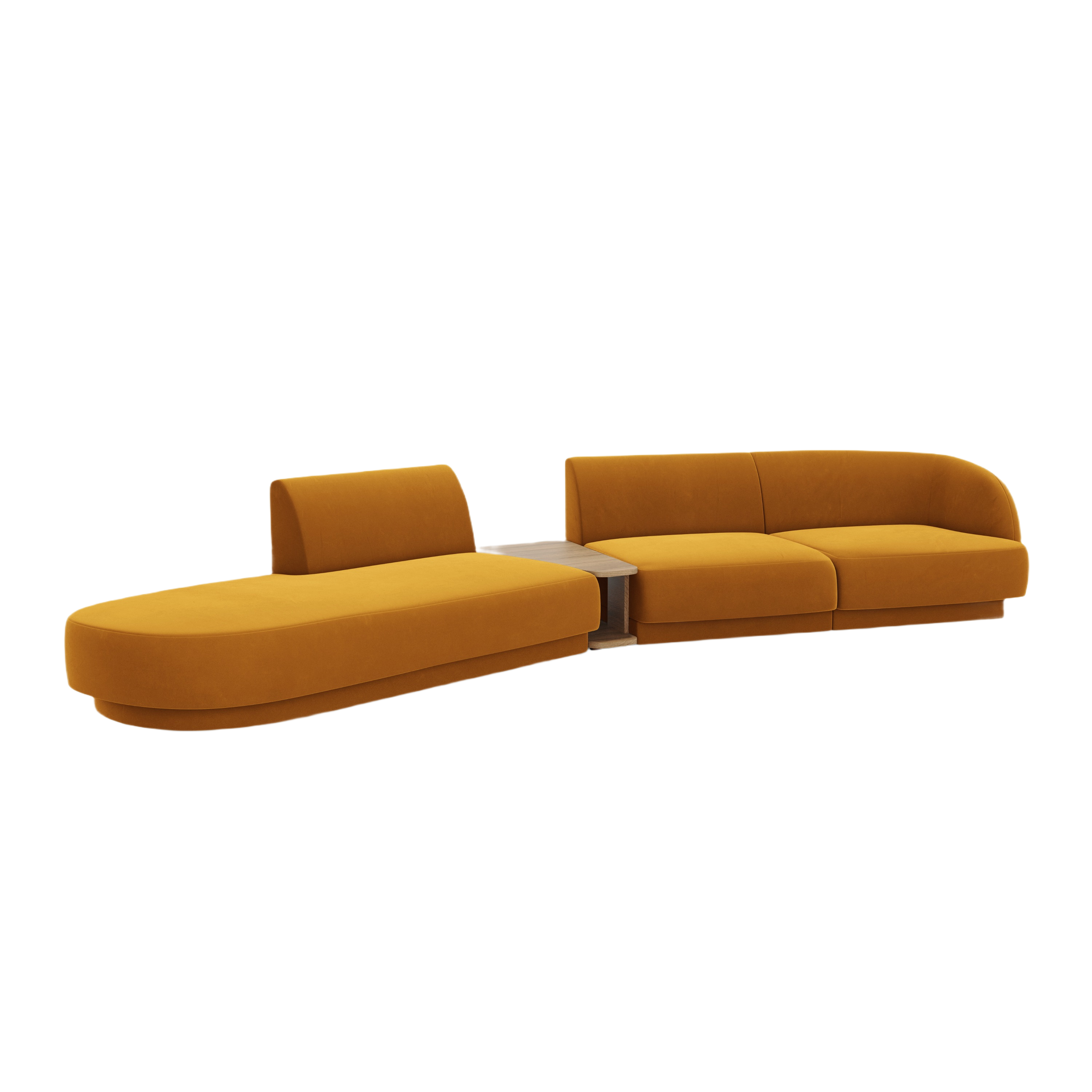 Left-sided modular sofa with table for 4 people in velvet MILEY yellow