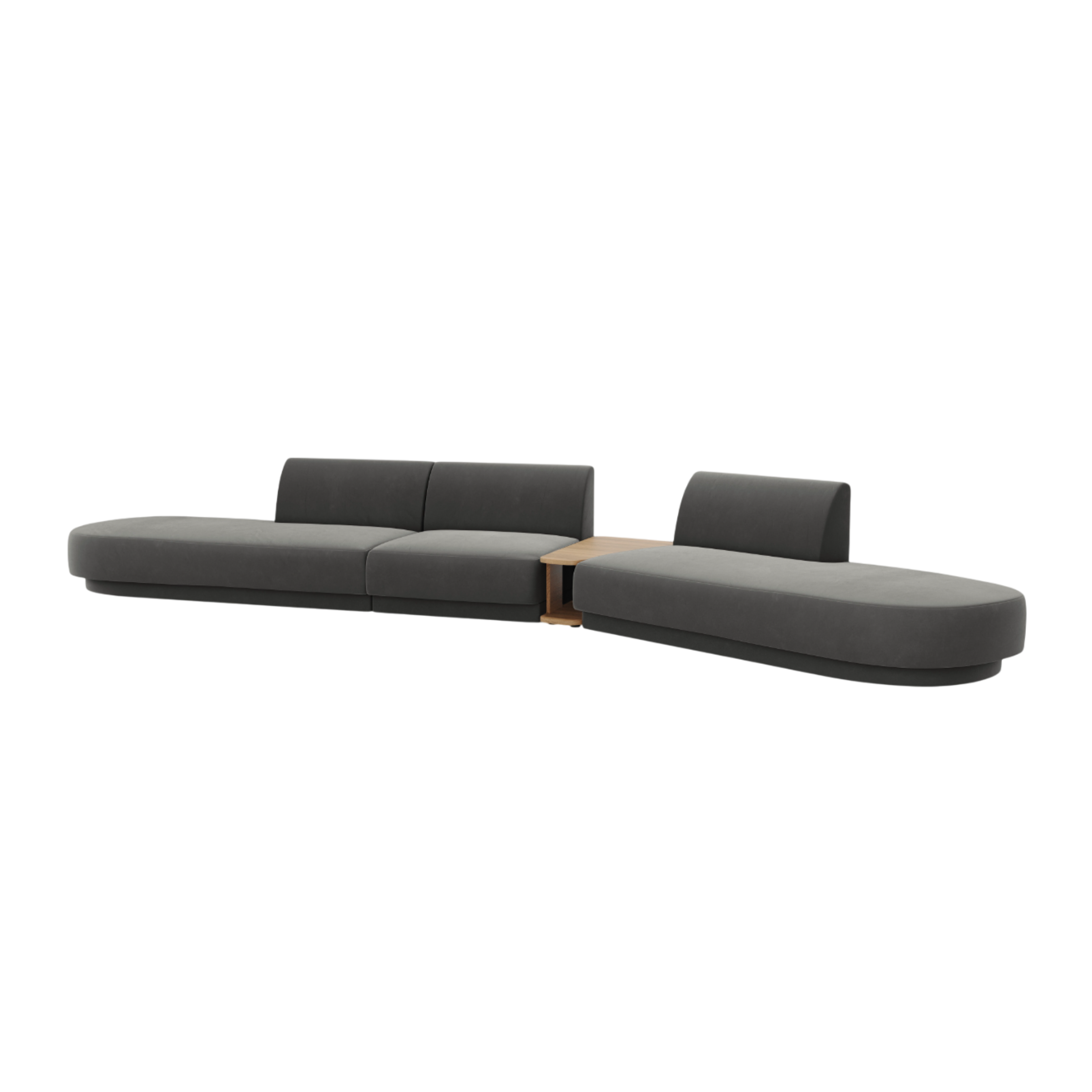 Right-facing modular sofa with table for 5 people, velvet MILEY light gray