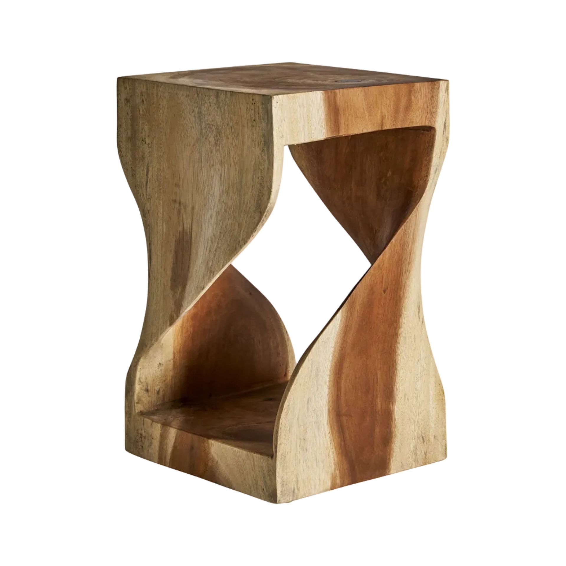 The Maun wooden side table, handcrafted, features unique characteristics of the wood, such as knots, cracks, and irregularities that highlight its natural charm. With its compact form, this elegant side table is the perfect choice for smaller spaces that need functional and stylish furnishings.