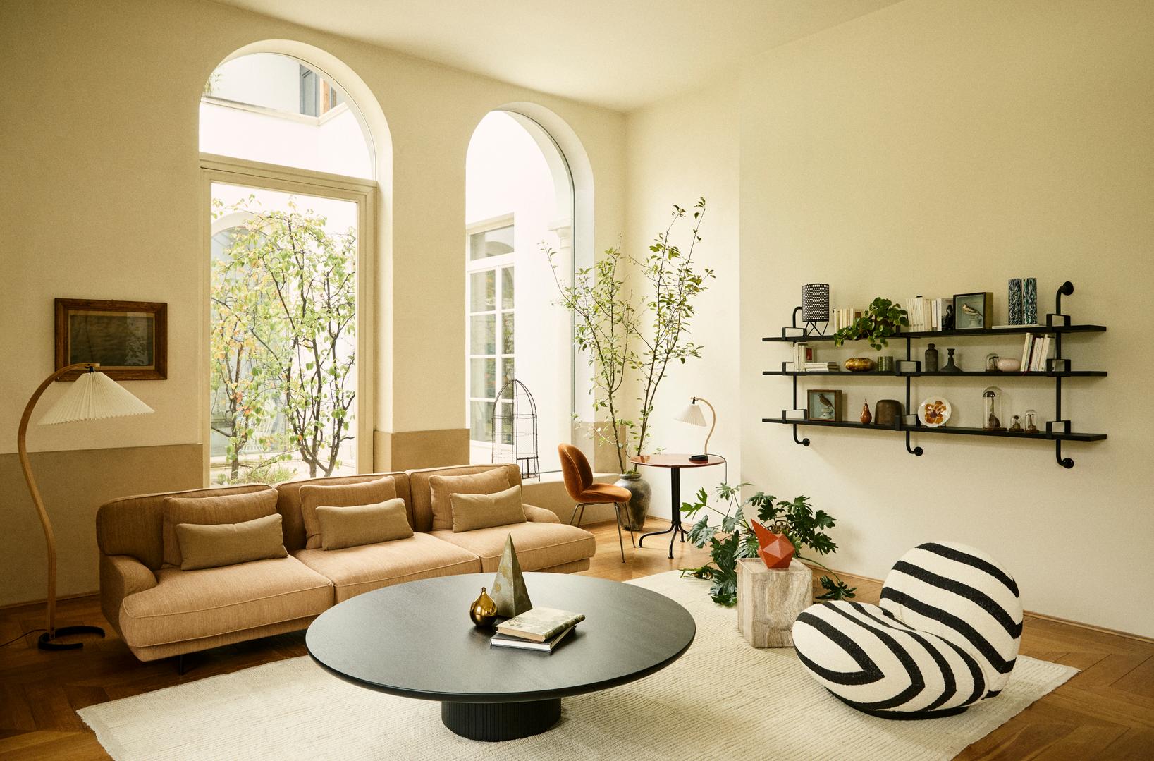 Coffee table Moon designed by the studio Space Copenhagen is a harmonious blend of classic Danish craftsmanship and modern form. The round, solid top made of solid oak rests on a sculptural base with a crescent shape, which serves both a structural and decorative function. The subtle beveling of the base surface gives the design a visual lightness and sophistication while ensuring stability.