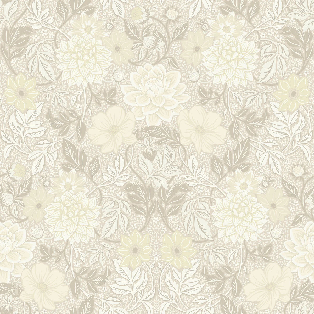 Non-woven paper wallpaper with a floral pattern DAHLIA GARDEN warm white with beige