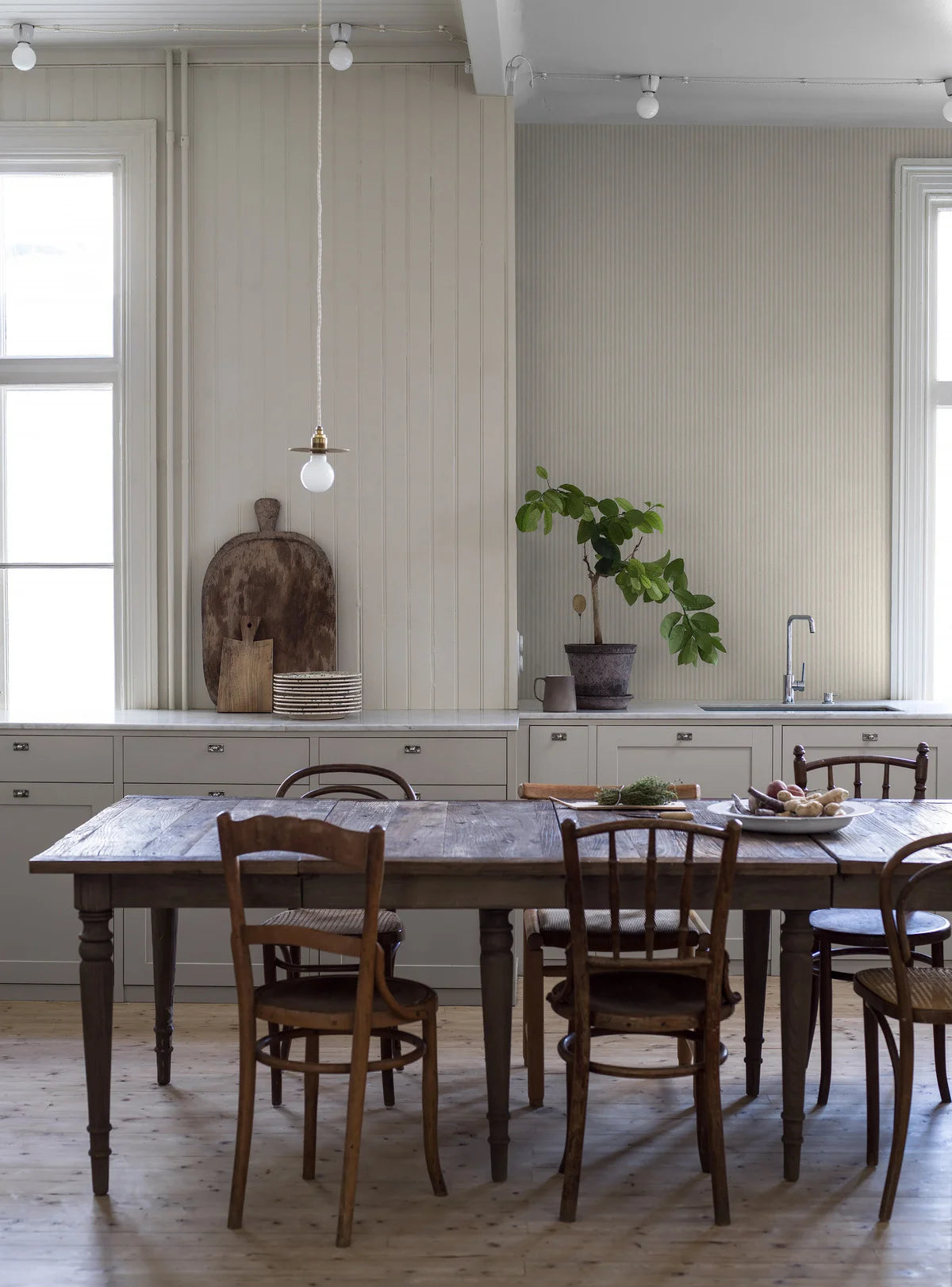 Polka Stripe Wallpaper is perfect for dining rooms, adding a touch of classic and modern elegance at the same time. Its versatile style allows for application on all walls or pairing with smooth wallpapers from the same collection. It’s an ideal choice for those seeking high-quality wall decoration that subtly enhances the character of the interior.
