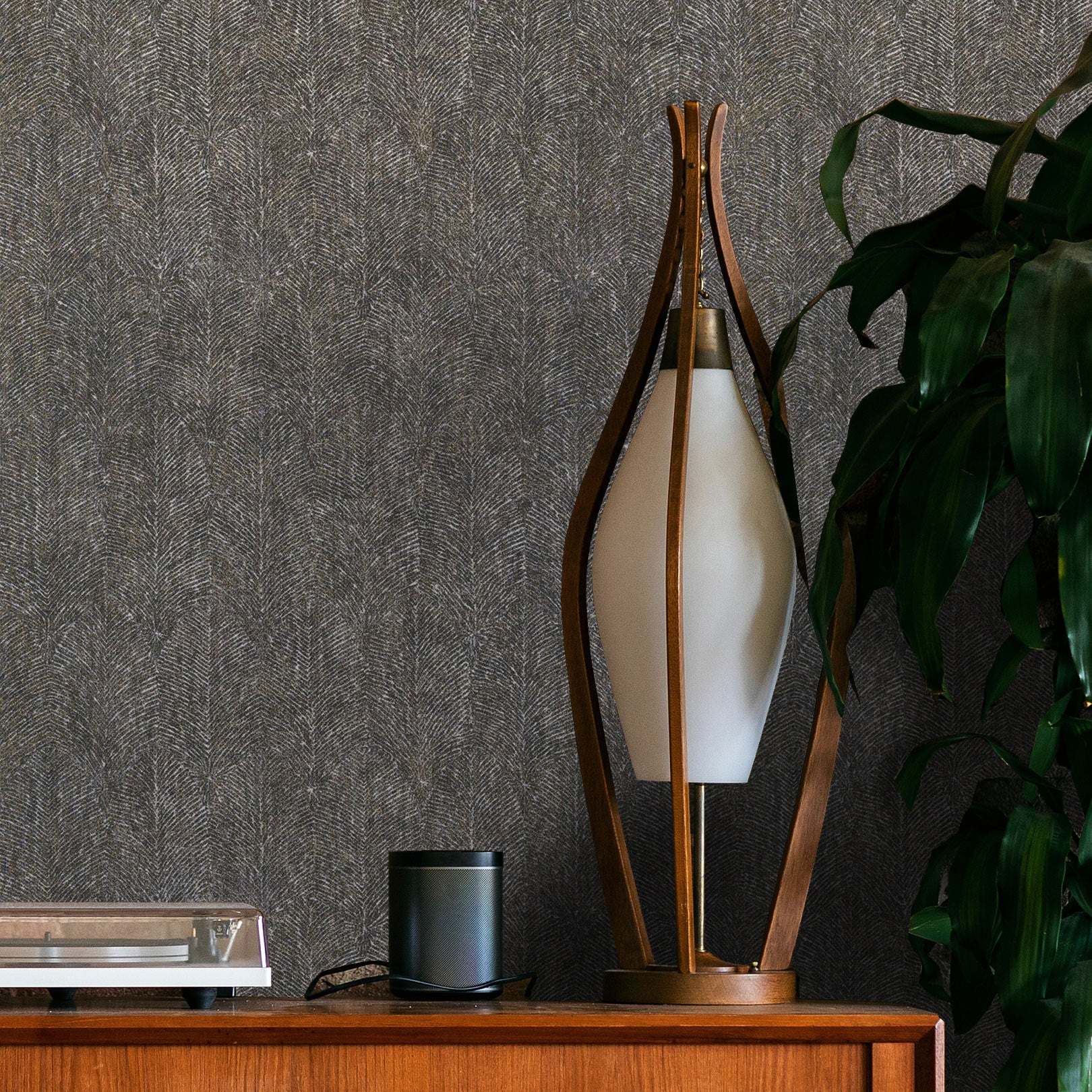 Structural wallpaper with a plant leaf motif ISABELLINE - NOIR dark brown