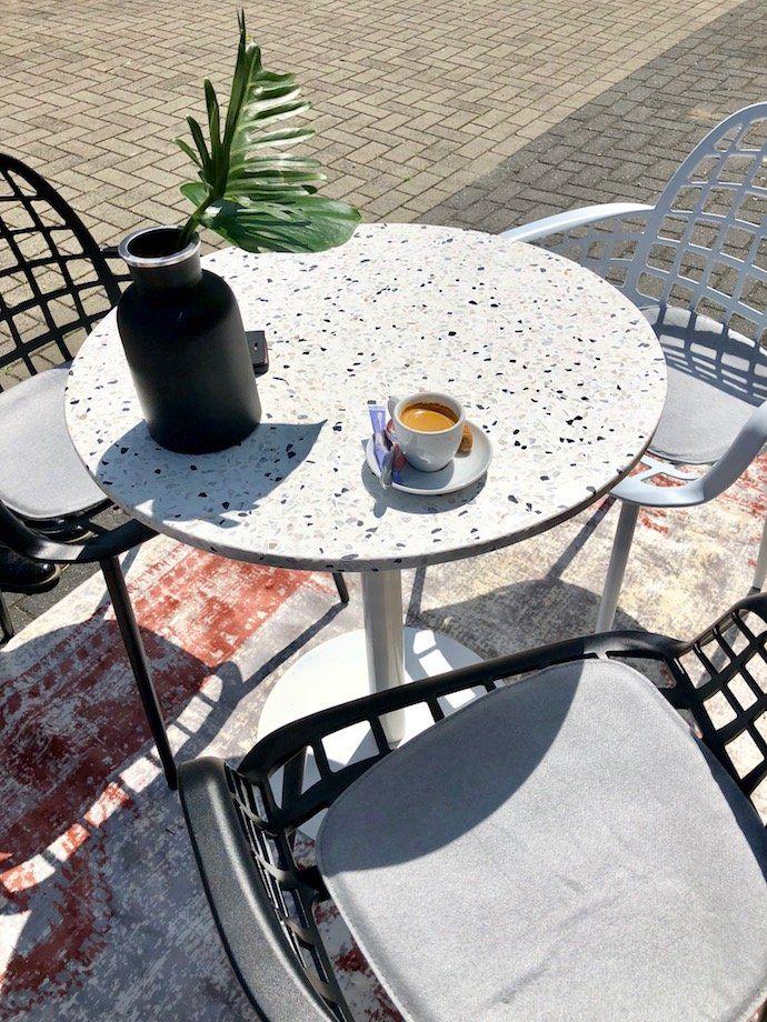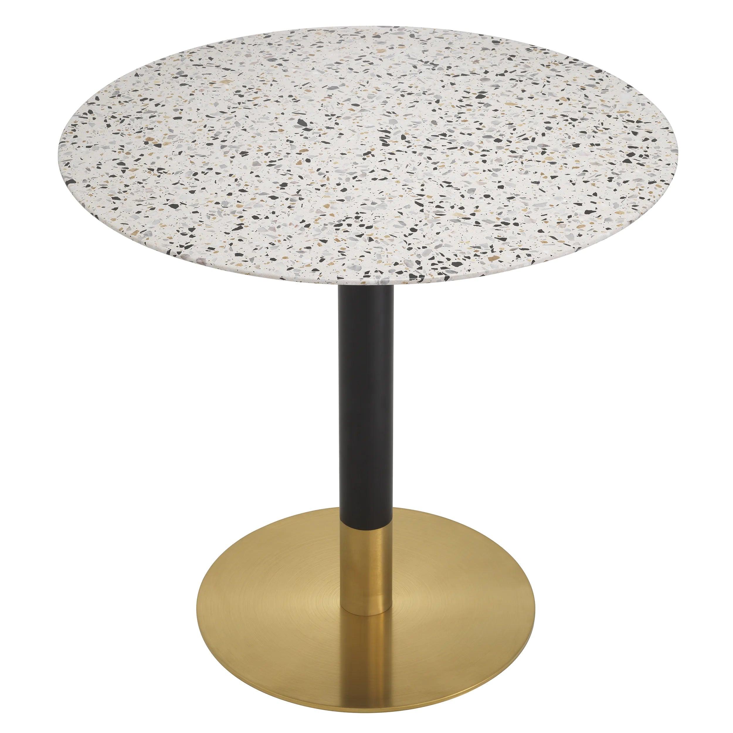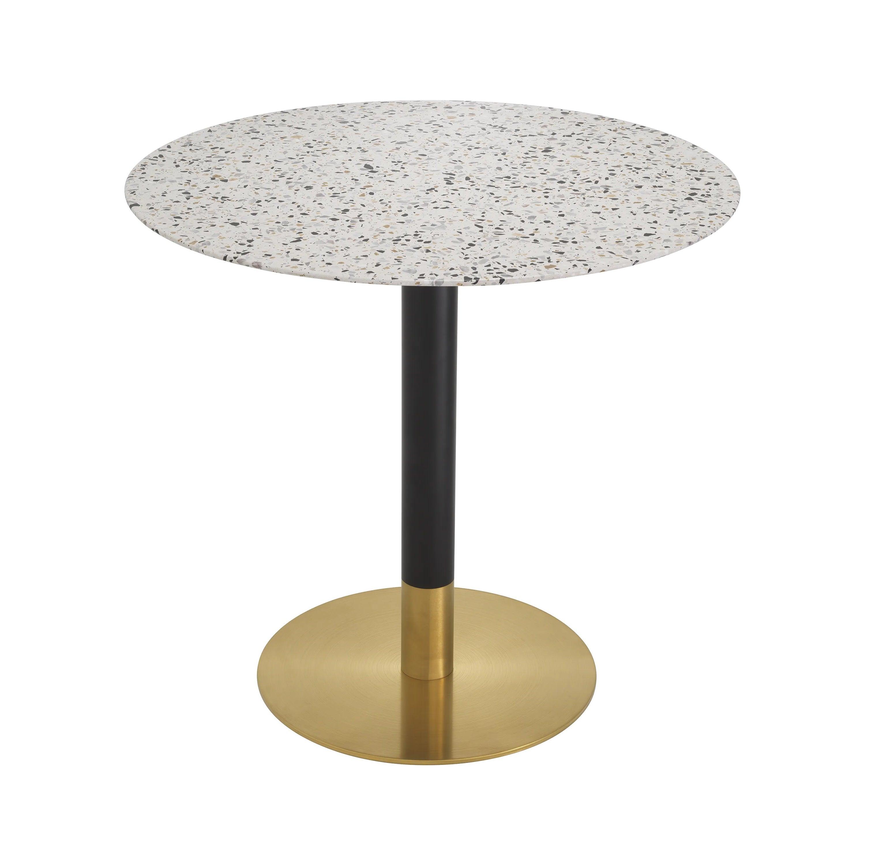 However, the true gem is the round tabletop. Its ceramic appearance reminiscent of terrazzo adds depth and character to the entire structure. The swirling pattern of veins on the surface is like an artistic canvas - every movement, every line adds a touch of mystery and uniqueness to the table.