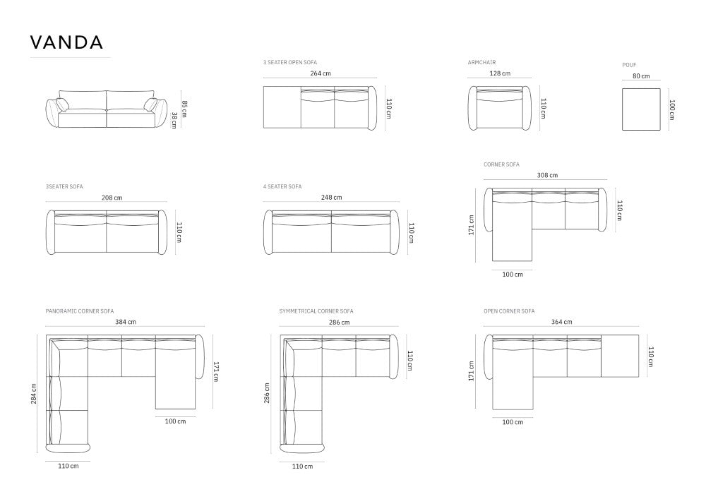 Vanda navy blue velvet panoramic corner