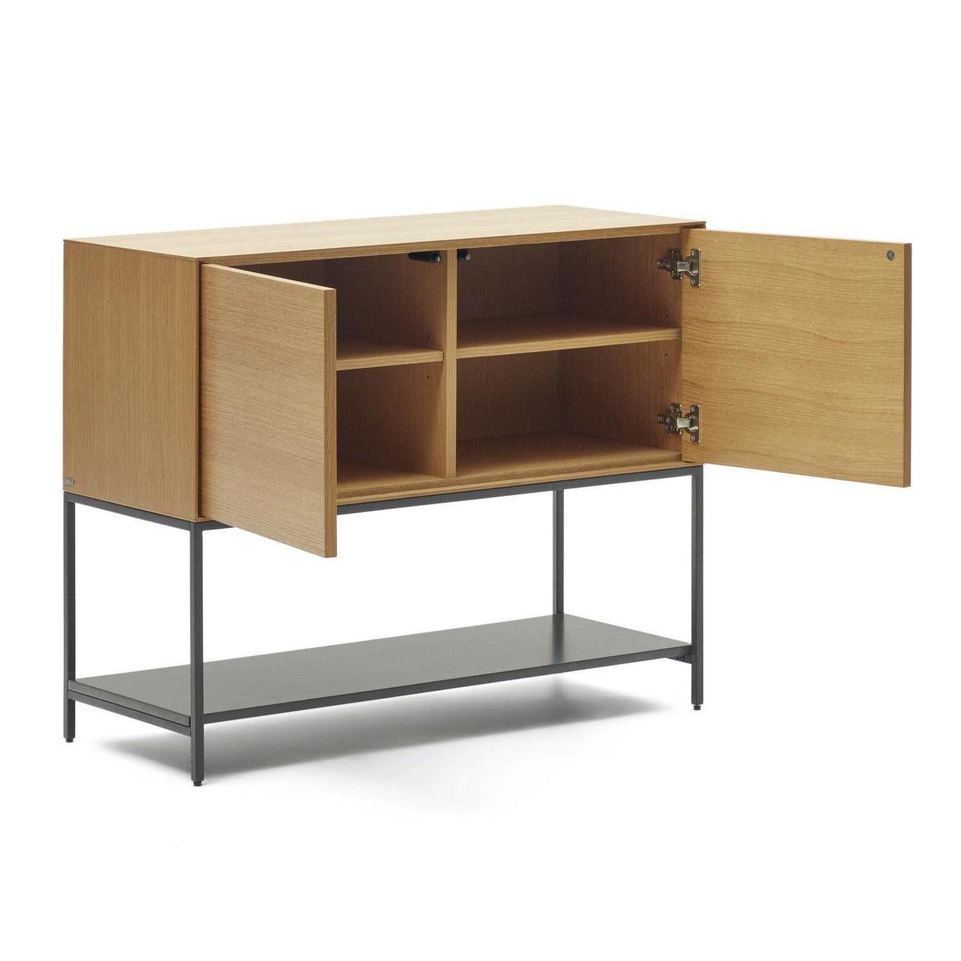 Low 2-Door Cabinet Vedrana, created by the experienced design team at La Forma, represents a perfect harmony between oak veneer and steel, creating a unique combination of functionality and aesthetics. This unique blend of materials makes Vedrana perfectly fit into various types of homes and design styles, highlighting their elegance and modernity.