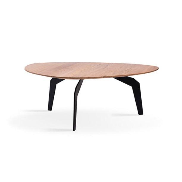 Wooden FEZA coffee table with a black base