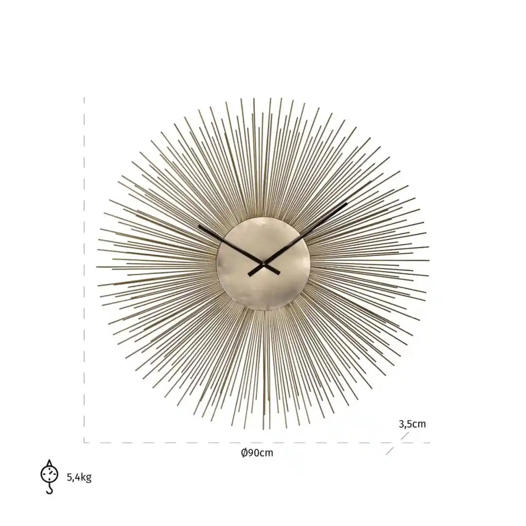 Chasin Wall Clock in the shape of a sun is a unique decoration that adds an unparalleled glow to your interior. The radiant design in gold creates a three-dimensional effect, making the clock a focal point of the arrangement. The slender black hands contrast with the background, providing elegance and functionality in one.