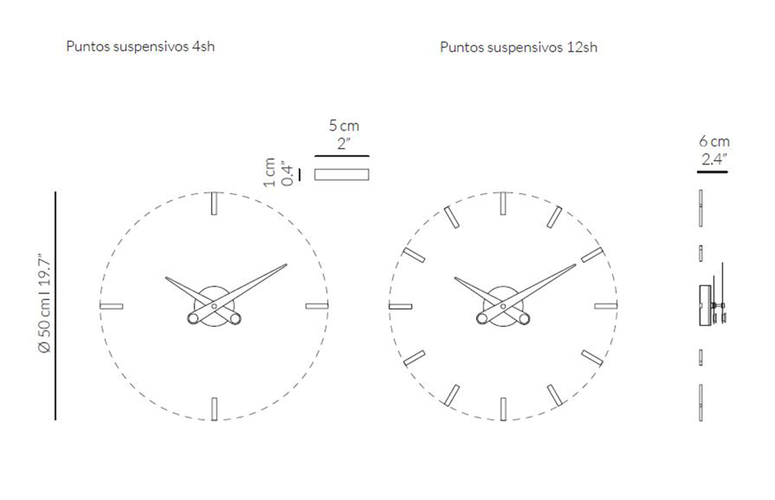 Wall Clock Puntos Suspensivos is a classic interpretation of industrial style in a minimalist, refined version. This clock stands out with its lightweight construction and subtle hour markers that create a delicate, geometric circle on the wall. The slender steel hands, available in black, red, or white, give it a modern character, making this modern wall clock a perfect fit for loft, Scandinavian, and modernist interiors.