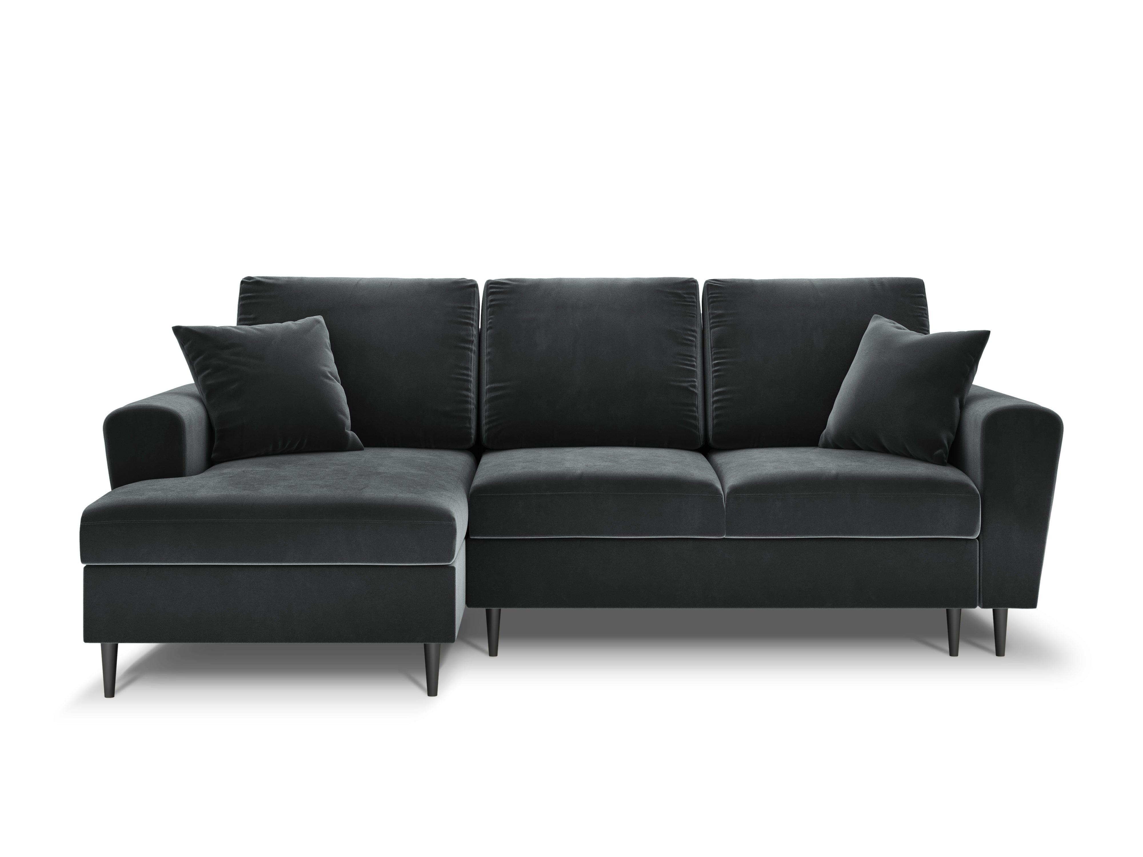 Narożnik lewostronny aksamitny z funkcją spania KYOTO ciemnoszary z czarną podstawą