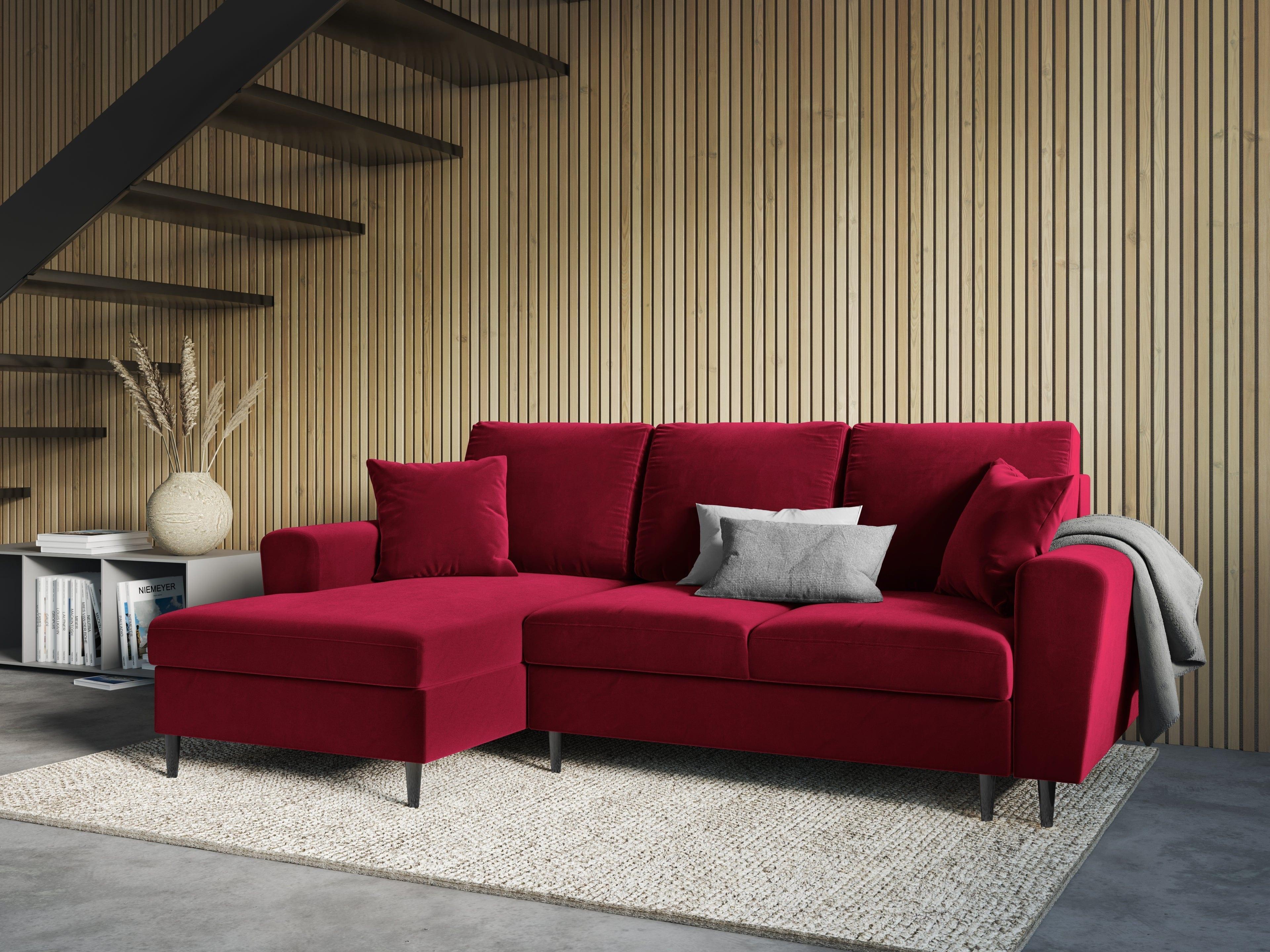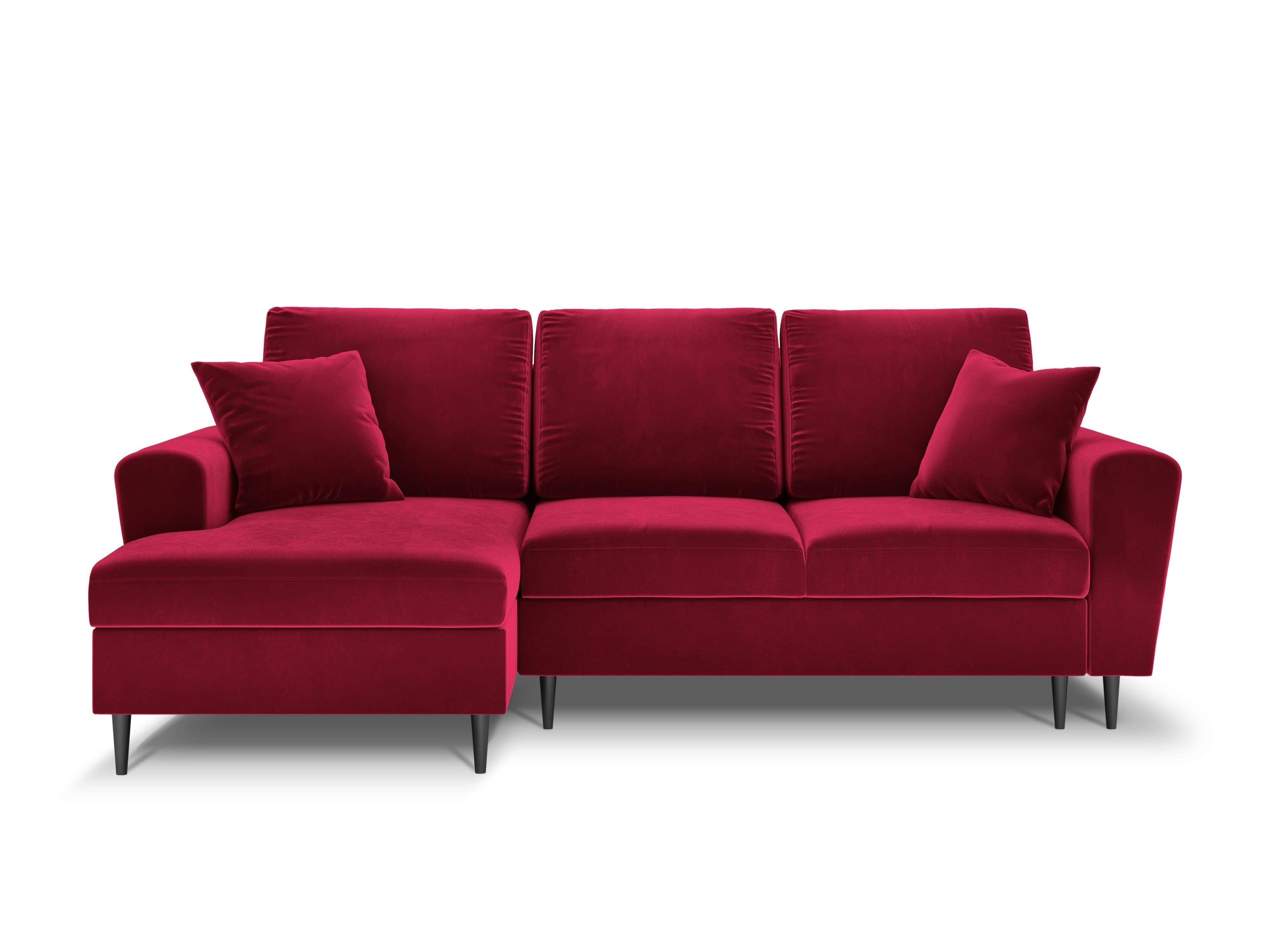 Rood linkszijdig fluwelen hoekbank met slaapfunctie KYOTO met zwarte basis