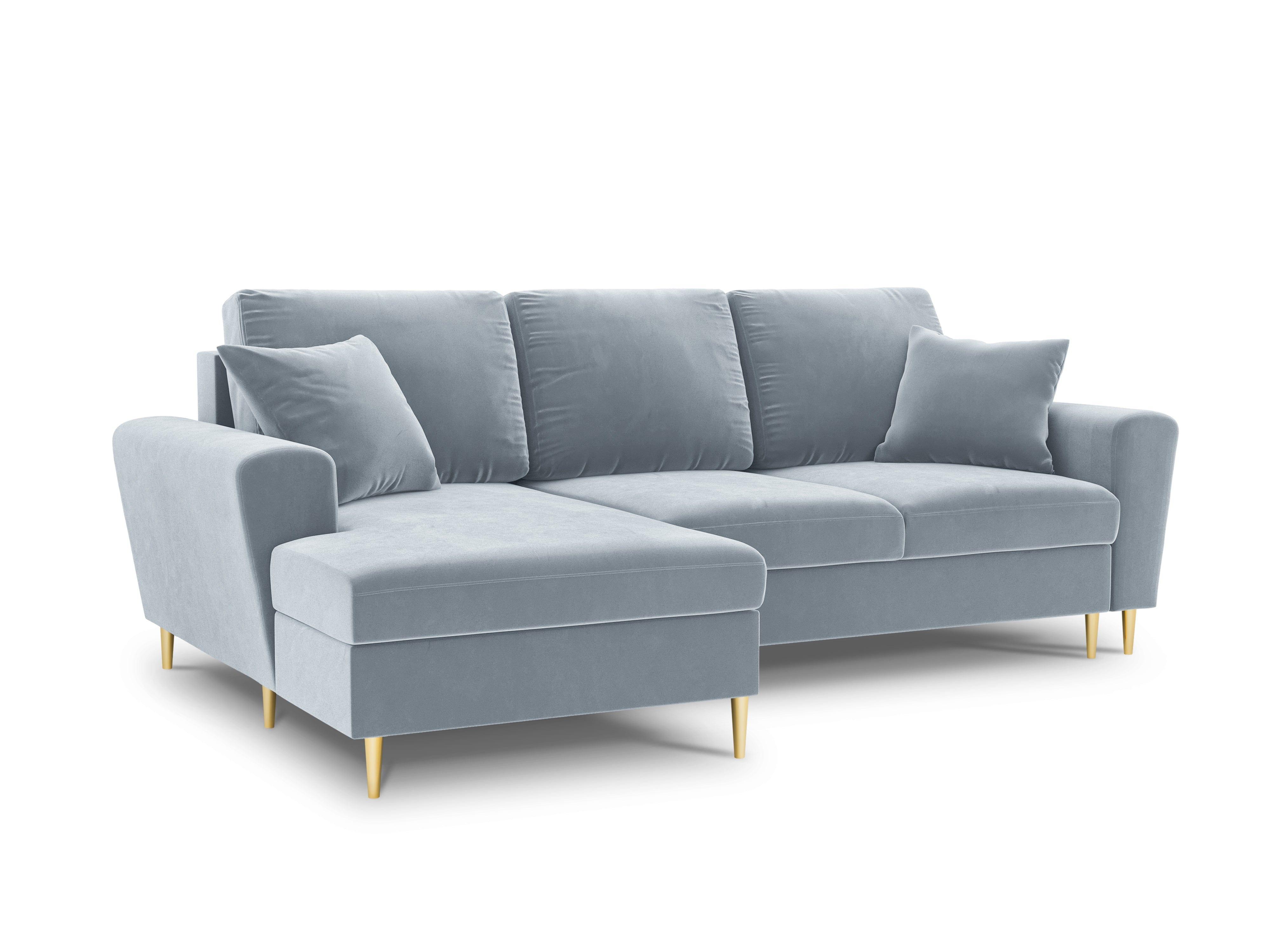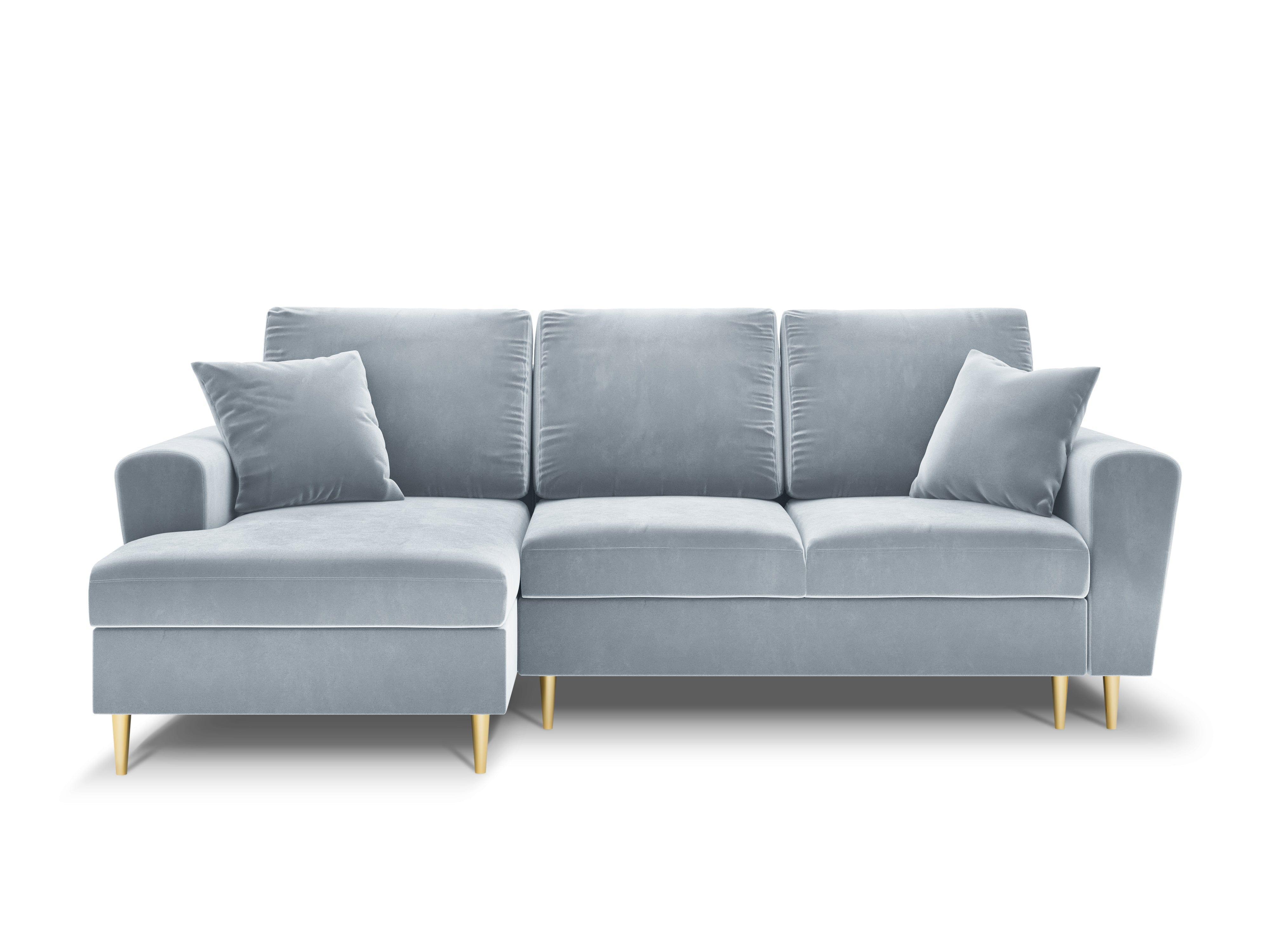 Linkszijdige fluwelen hoekbank met slaapfunctie KYOTO lichtblauw met gouden basis