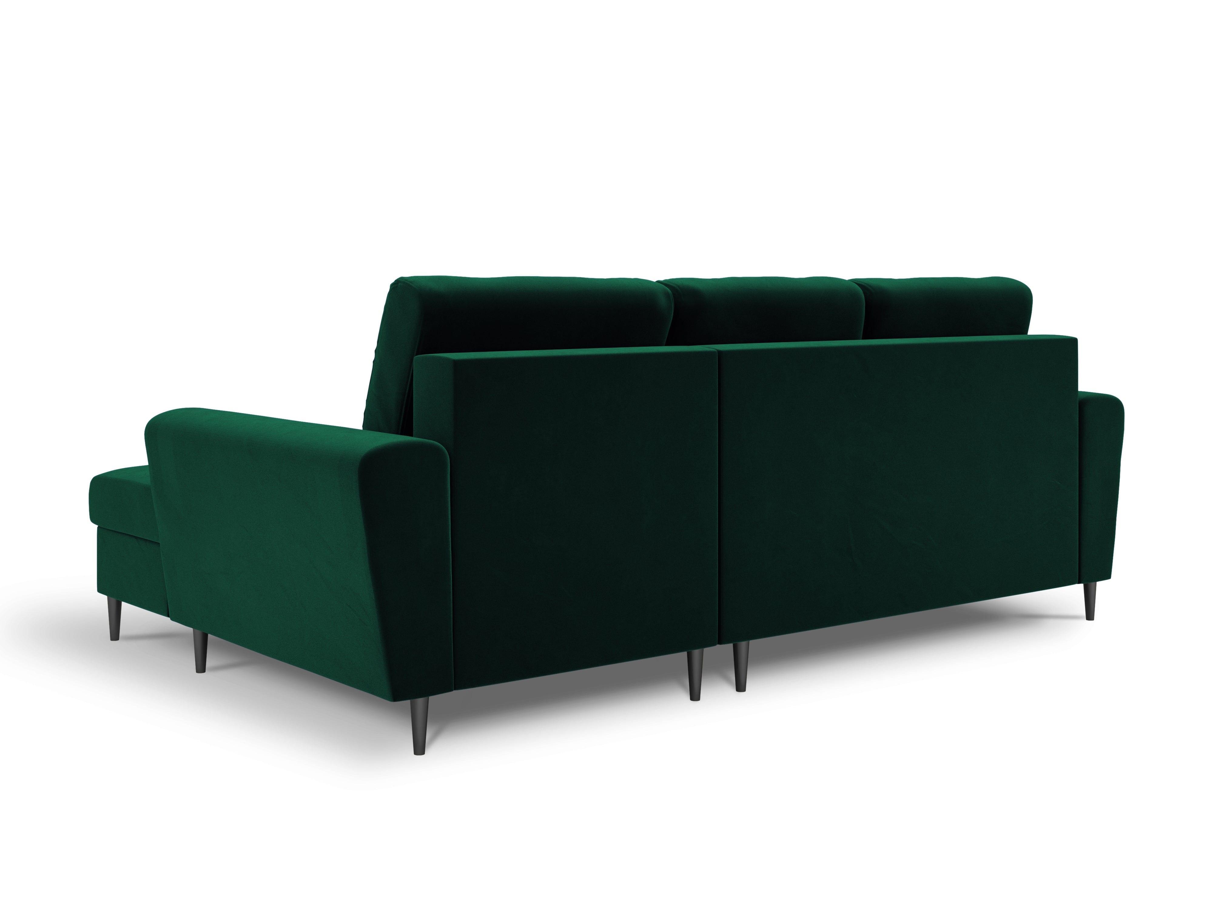 Rechthoekige fluwelen hoekbank met slaapfunctie KYOTO in flesgroen met zwarte basis