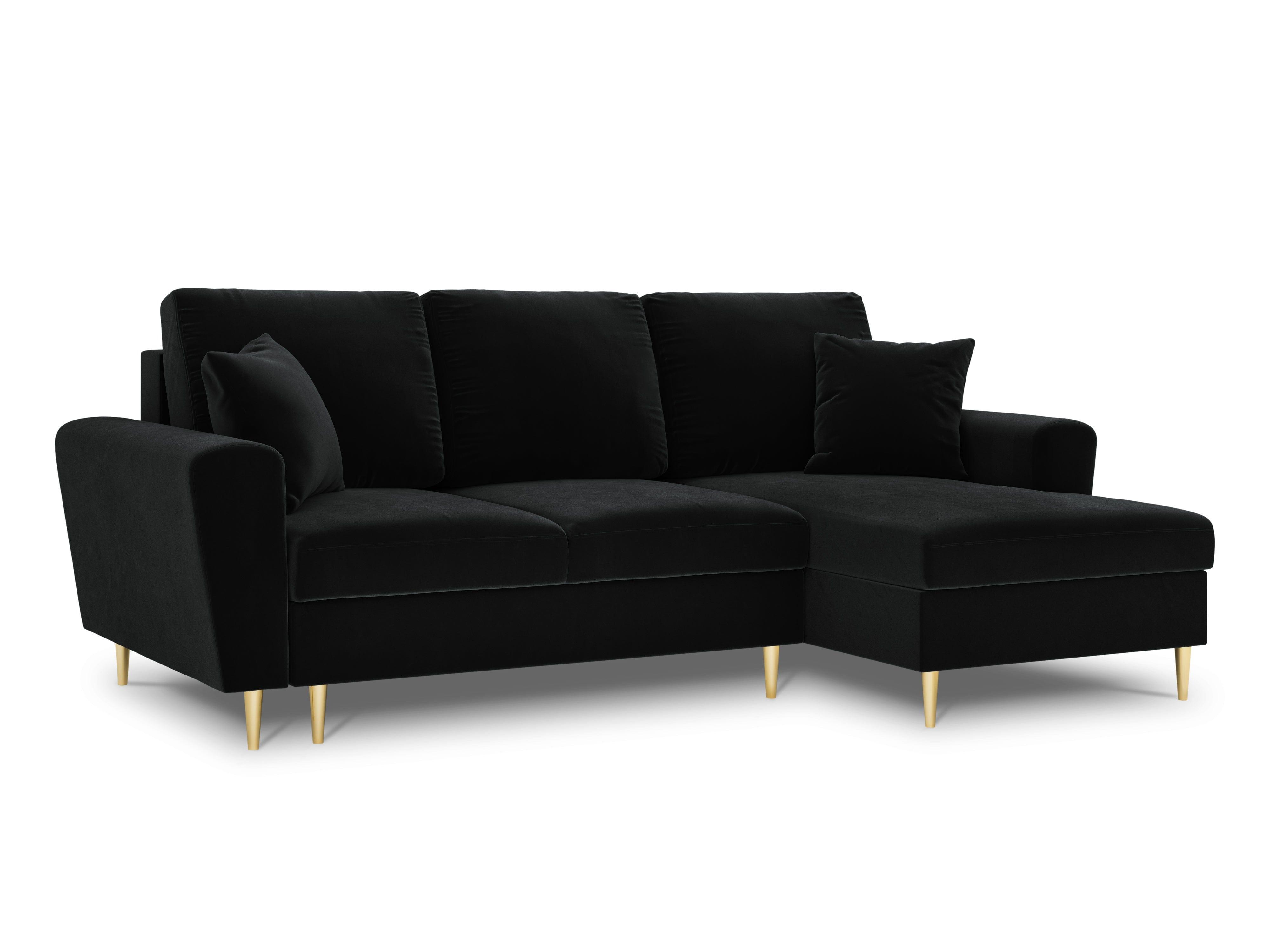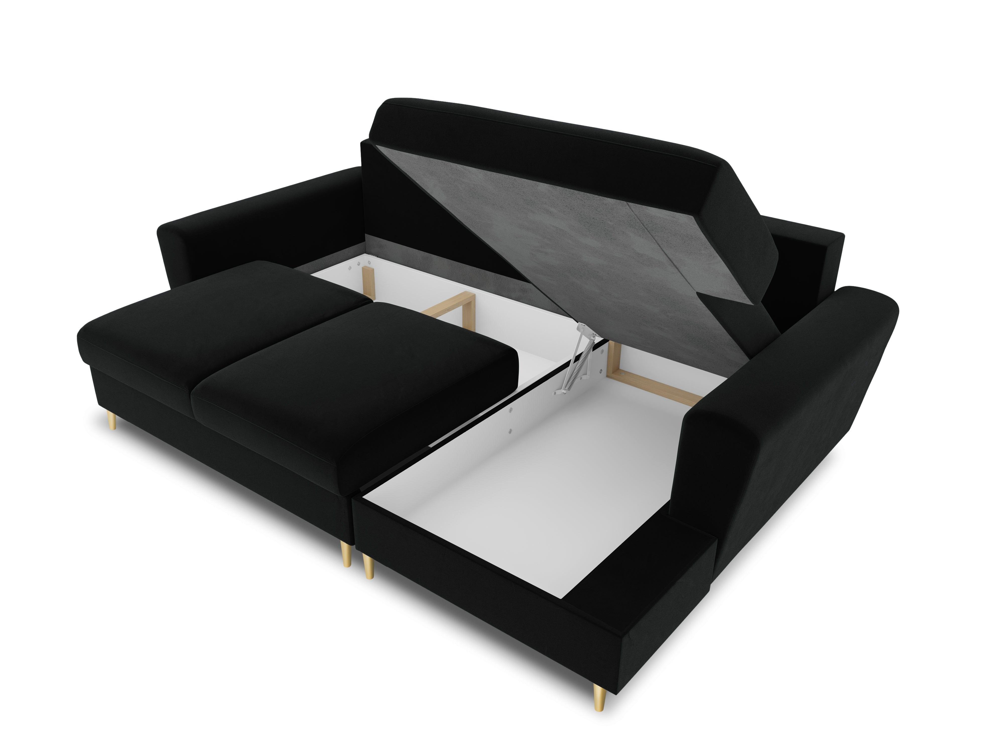Rechthoekige fluwelen hoekbank met slaapfunctie KYOTO zwart met gouden basis
