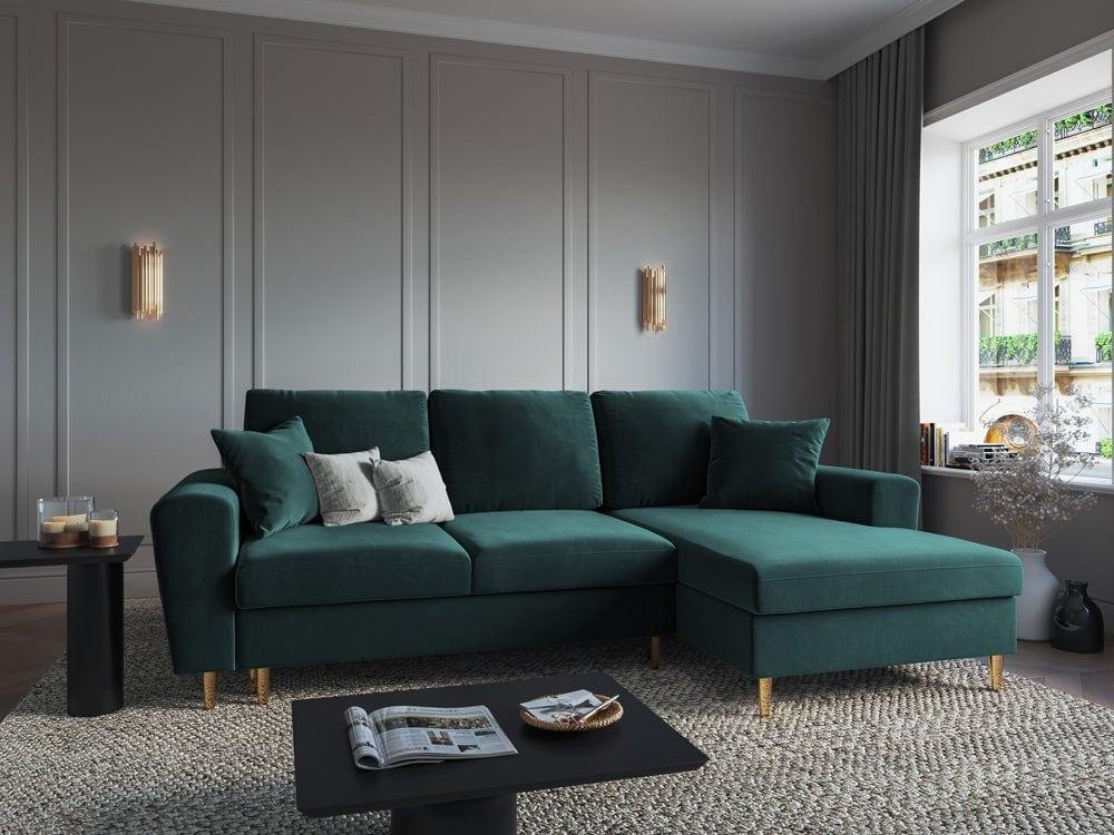 Rechthoekige fluwelen hoekbank met slaapfunctie KYOTO petrol met gouden basis