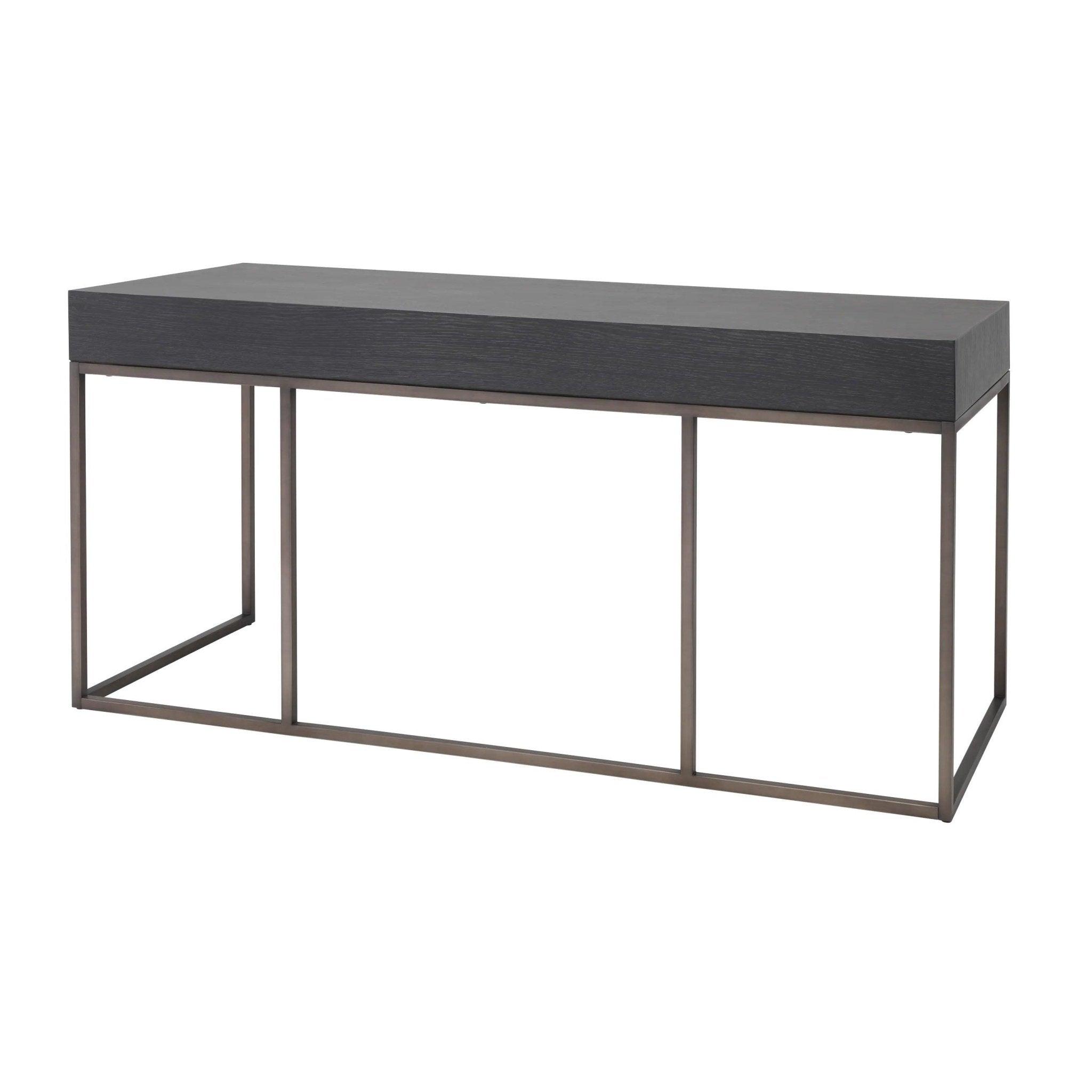 Bureau Larsen is een combinatie van eenvoud en verfijnde retrostijl. Het eikenfineer in een diepe grafietgrijze tint vormt een perfect achtergrond voor de elegante, moderne lades, die zich onderscheiden door unieke handgrepen van kunstleer. Deze details geven het bureau karakter en klasse.