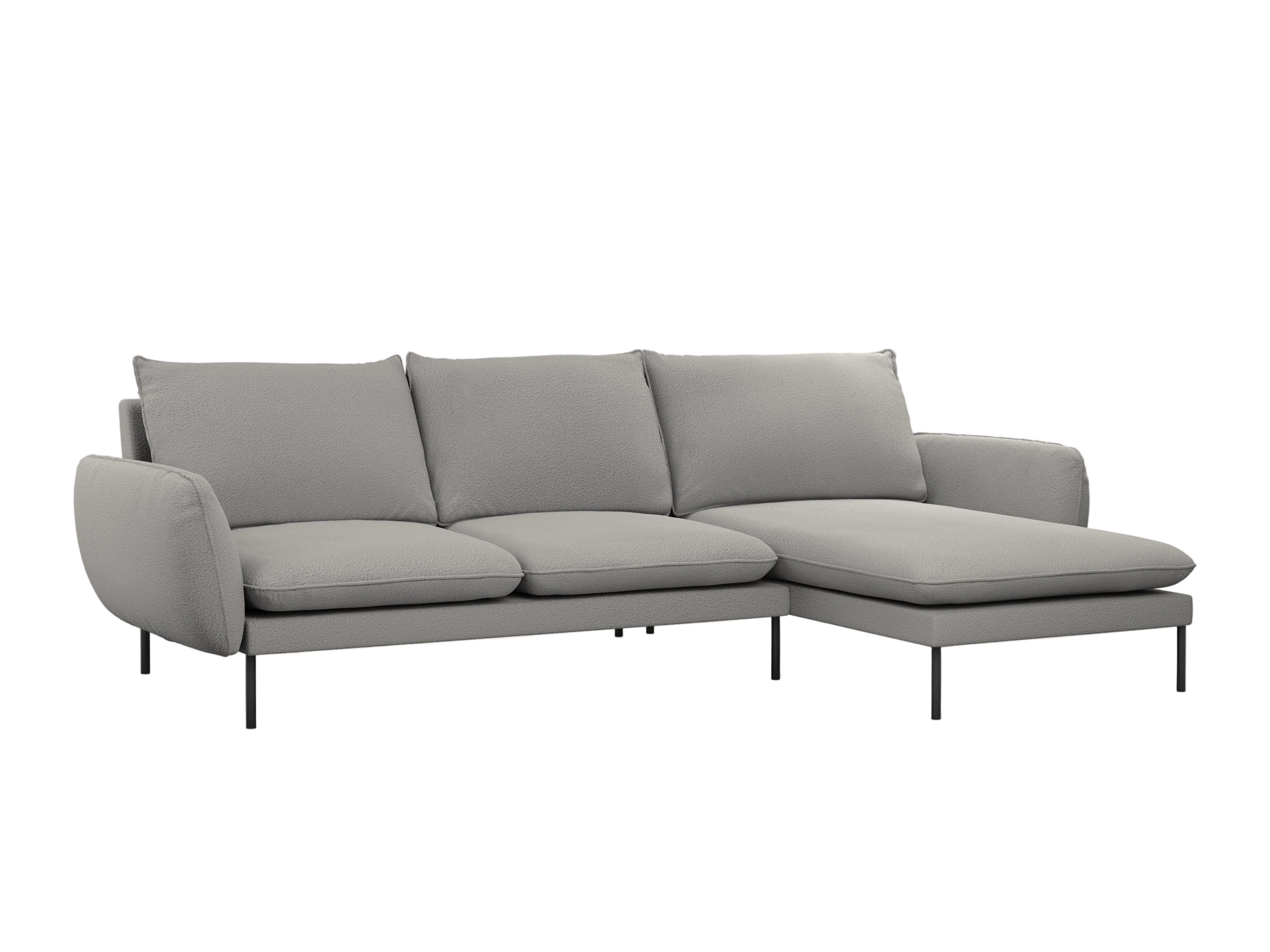 Rechthoekige 5-persoons hoekbank VIENNA grijze boucle met zwarte basis