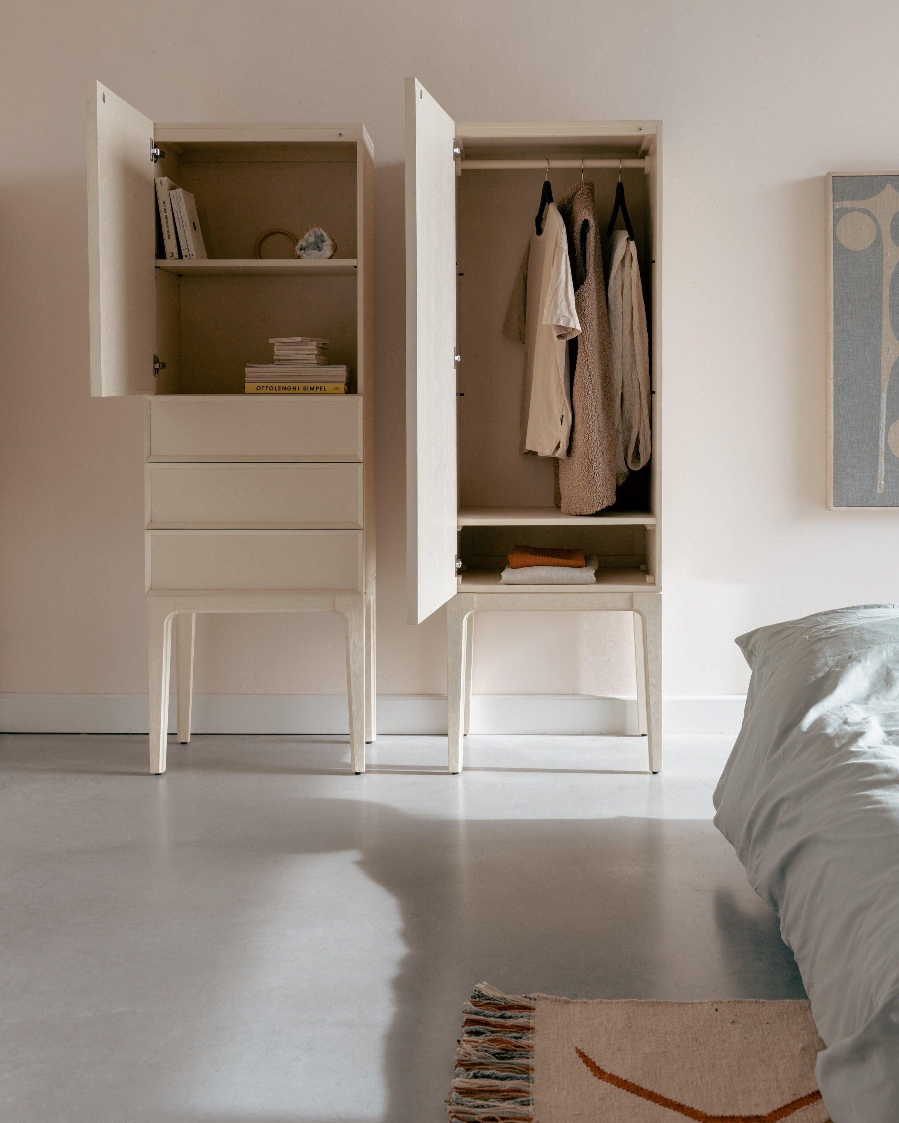 Met zorg voor detail ontworpen kast June valt op door de opvallende afwerking op de deuren. Achter de aandacht trekkende houten fronten bevinden zich ruime lades, die plaats bieden voor al uw noodzakelijke spullen.