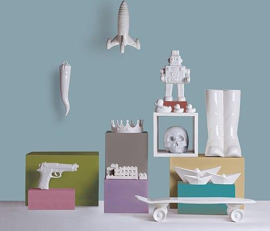 Collectie van herinneringen die vergeten momenten tot leven brengen en ze in goud onderdompelen. Door in een oude speelgoeddoos te kijken, kunt u originele voorwerpen ontdekken die elke ruimte op een humoristische manier kunnen verfraaien, of ze nu liggen, hangen of staan.
