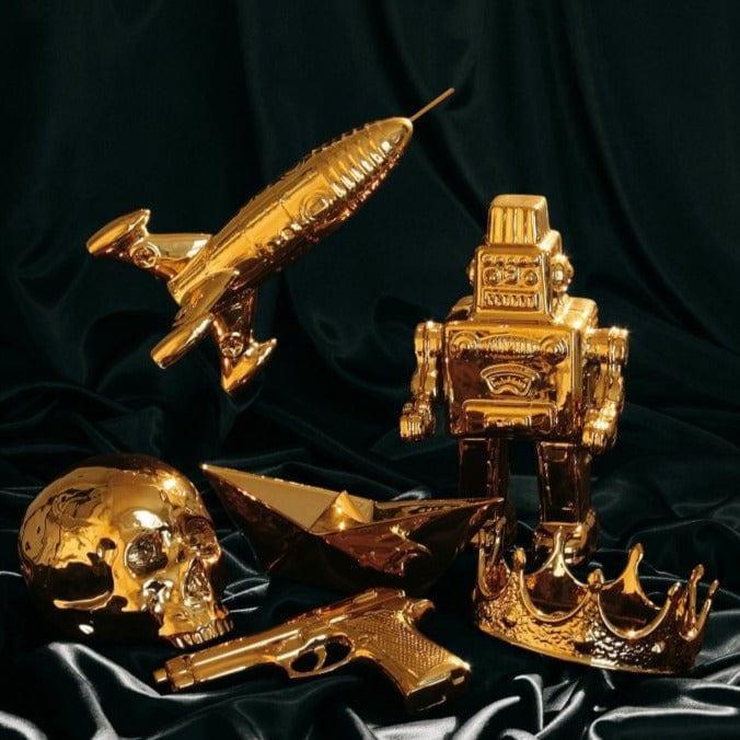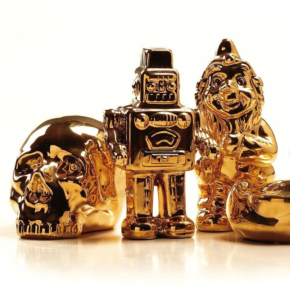 Een collectie herinneringen die vergeten momenten tot leven brengen en ze in goud onderdompelen. Door in een oude speelgoeddoos te kijken, kunt u originele voorwerpen ontdekken die elke ruimte op een humoristische manier kunnen verfraaien, of ze nu liggen, hangen of staan.