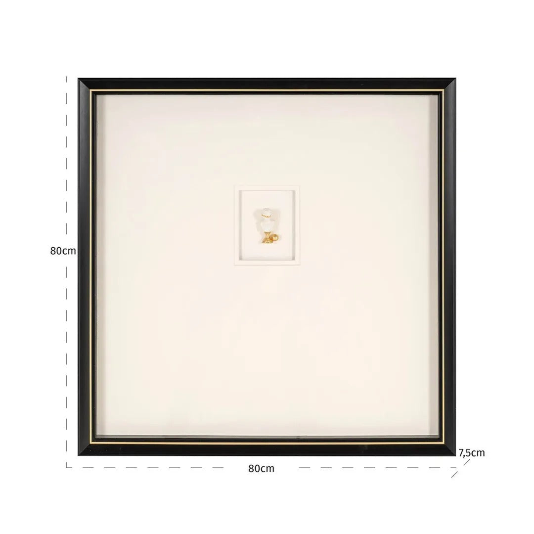 Wyjątkowy obraz Danni, który łączy w sobie elegancję i subtelną nowoczesność. Centralnie umieszczony element rzeźbiarski wprowadza do aranżacji unikalny charakter, a kontrast pomiędzy czarną ramą a jasnym tłem dodaje całości głębi i klasy. To idealna ozdoba do salonu, sypialni lub biura, gdzie stanie się efektownym akcentem przyciągającym spojrzenia.