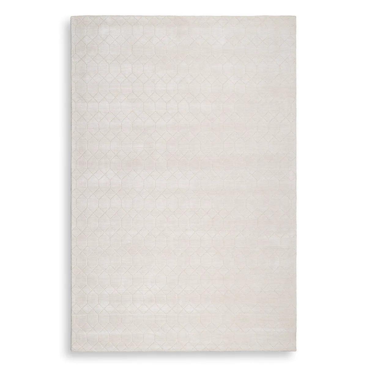 Ontdek lichtbeige tapijt Orlando, dat niet alleen uw interieur siert, maar ook een dramatische en diepe uitstraling geeft op een uiterst subtiele manier. Handgeweven van de hoogste kwaliteit materialen, dit tapijt betovert met een geometrisch patroon dat doet denken aan een honingraat.