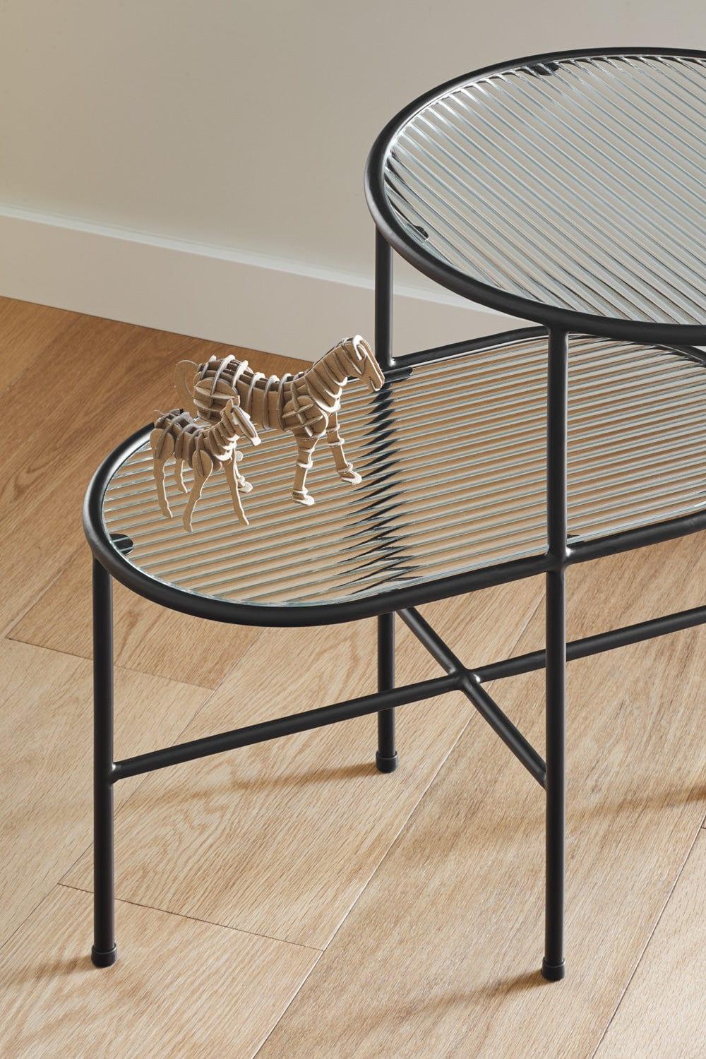 Dankzij de uitzonderlijke precisie van de afwerking kan de zwarte bijzettafel Nix ook op het terras of balkon worden gebruikt. Het elegante glas dat is gebruikt voor het blad geeft de constructie een lichte uitstraling en maakt het moeilijk om je blik ervan af te houden.