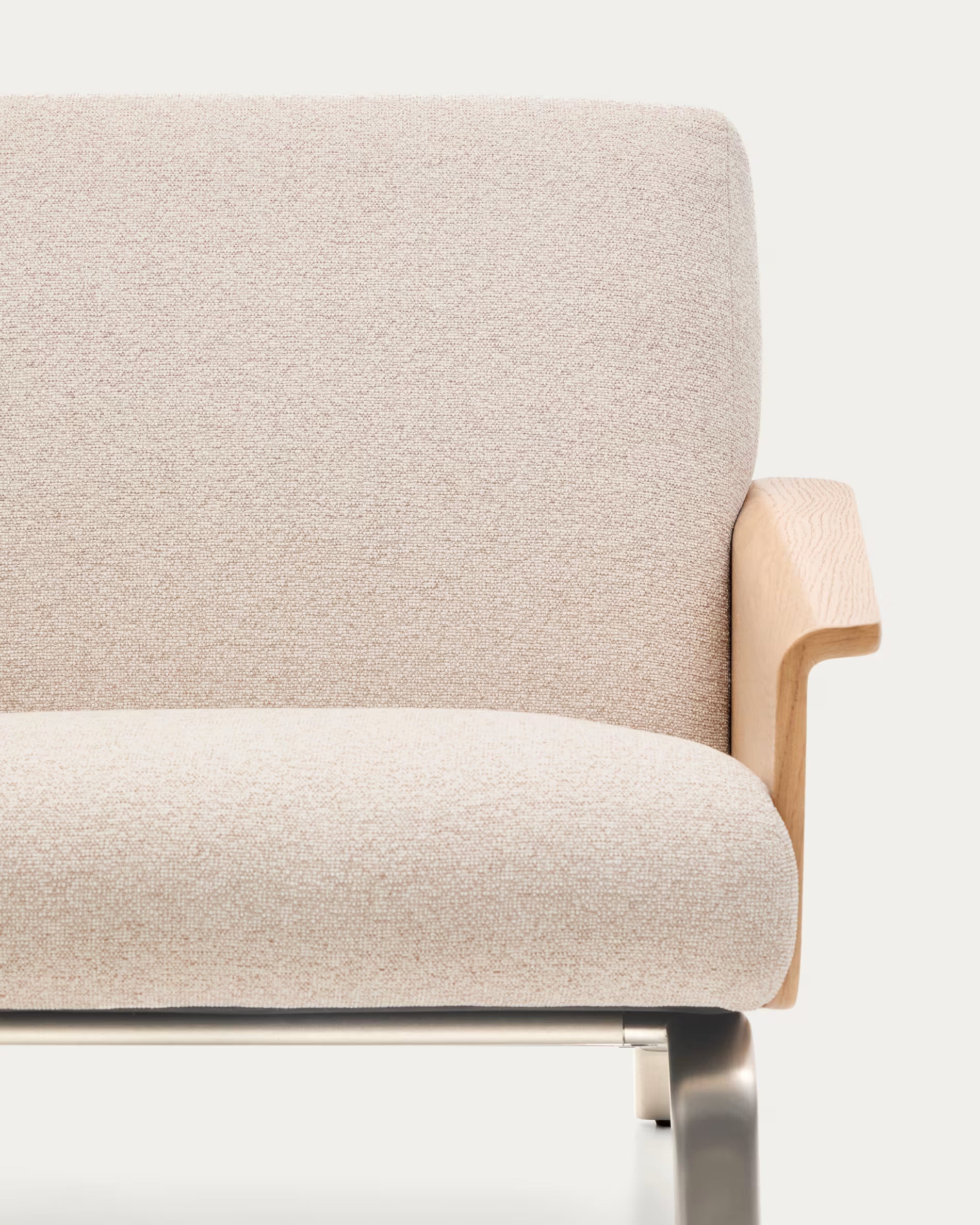 Beige fauteuil AMSEN met eiken multiplex en stalen basis