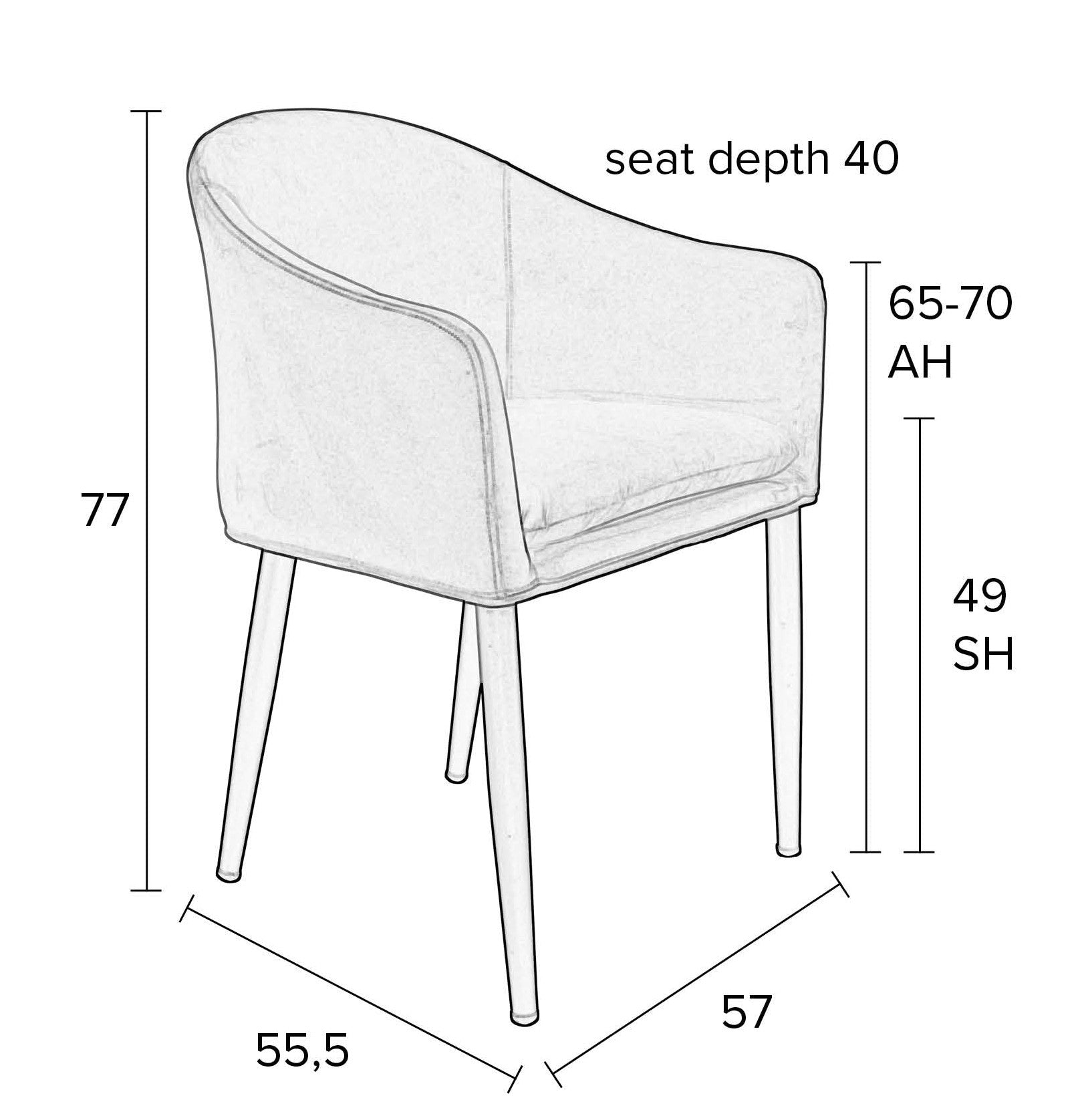 Catelyn is een elegante stoel die perfect past in moderne interieurs. De zwarte, stalen poten en de afgeronde vormen van de zitting, armleuningen en rugleuning geven de ruimte een lichte en hedendaagse uitstraling. Deze combinatie van vorm en functie maakt de stoel een ideale aanvulling op een stijlvolle woonkamer.