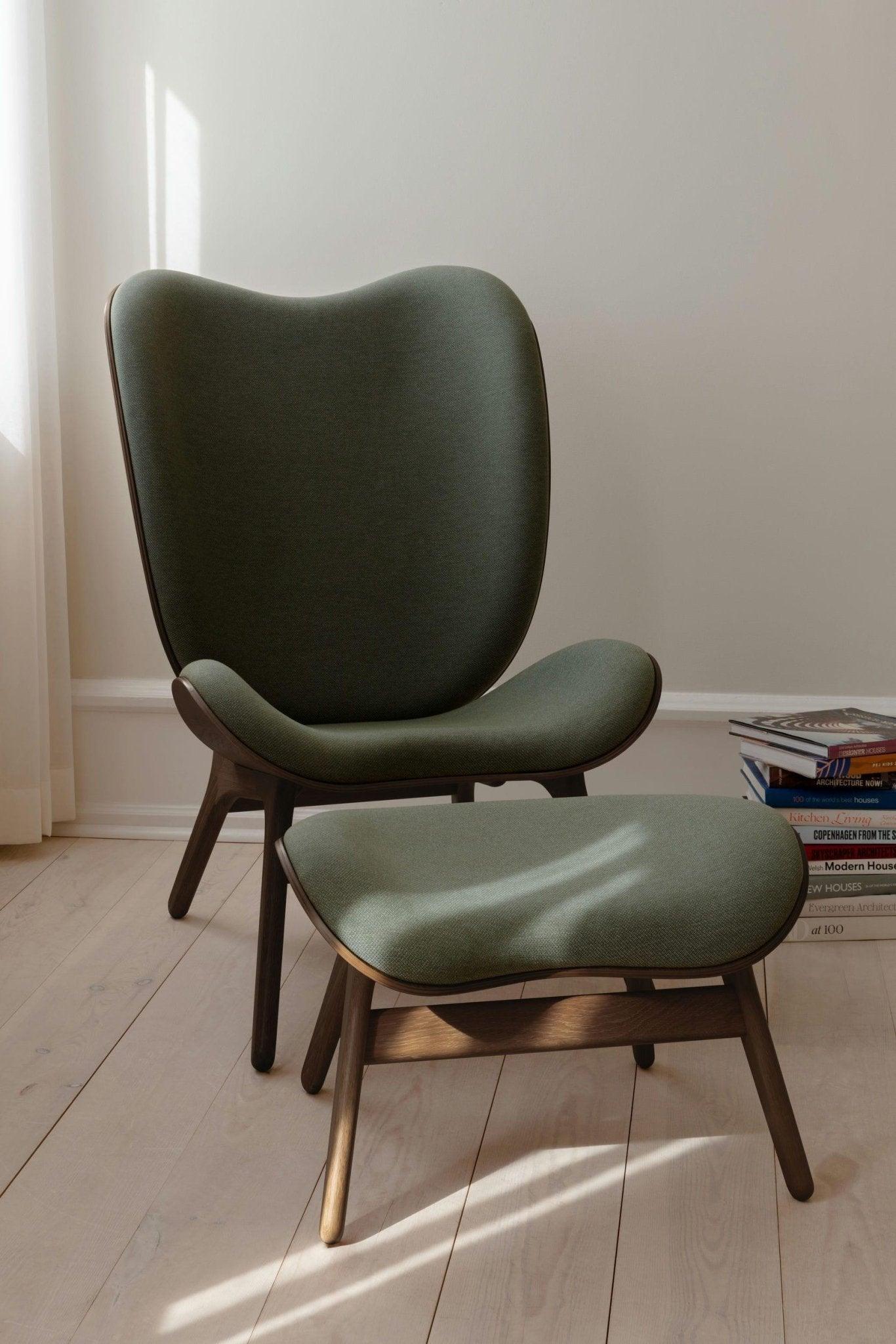 Fauteuil Conversation Piece Tall is verkrijgbaar in eiken, donker eiken en zwart eiken, in acht zorgvuldig geselecteerde tinten van de stof Horizons, volledig gemaakt van gerecyclede materialen, evenals in twee kleuren van de stof Teddy Bear.