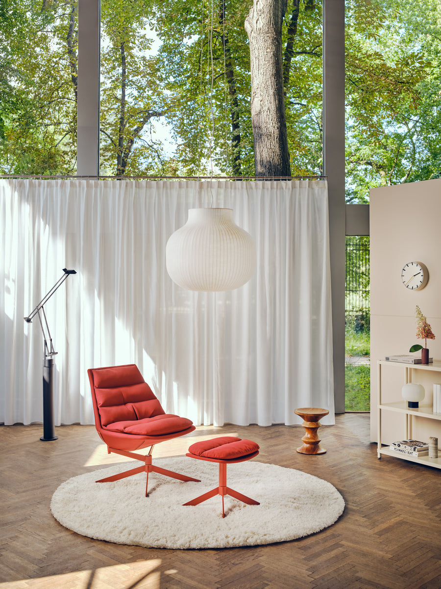 Fotel Fat Frank to synonim najwyższego komfortu, dzięki miękkim poduszkom i obrotowej podstawie, który zaprasza do pełnego relaksu. Jego elegancka, zaokrąglona forma, z głębokim siedziskiem i odchylonym o 30° oparciem, pozwala na swobodne oparcie się i otwarcie klatki piersiowej, co sprzyja wygodnemu siedzeniu bez garbienia się. Fotel dostępny jest na klasycznej czworonożnej lub czteroramiennej obrotowej podstawie, co dodaje mu nowoczesnego charakteru.