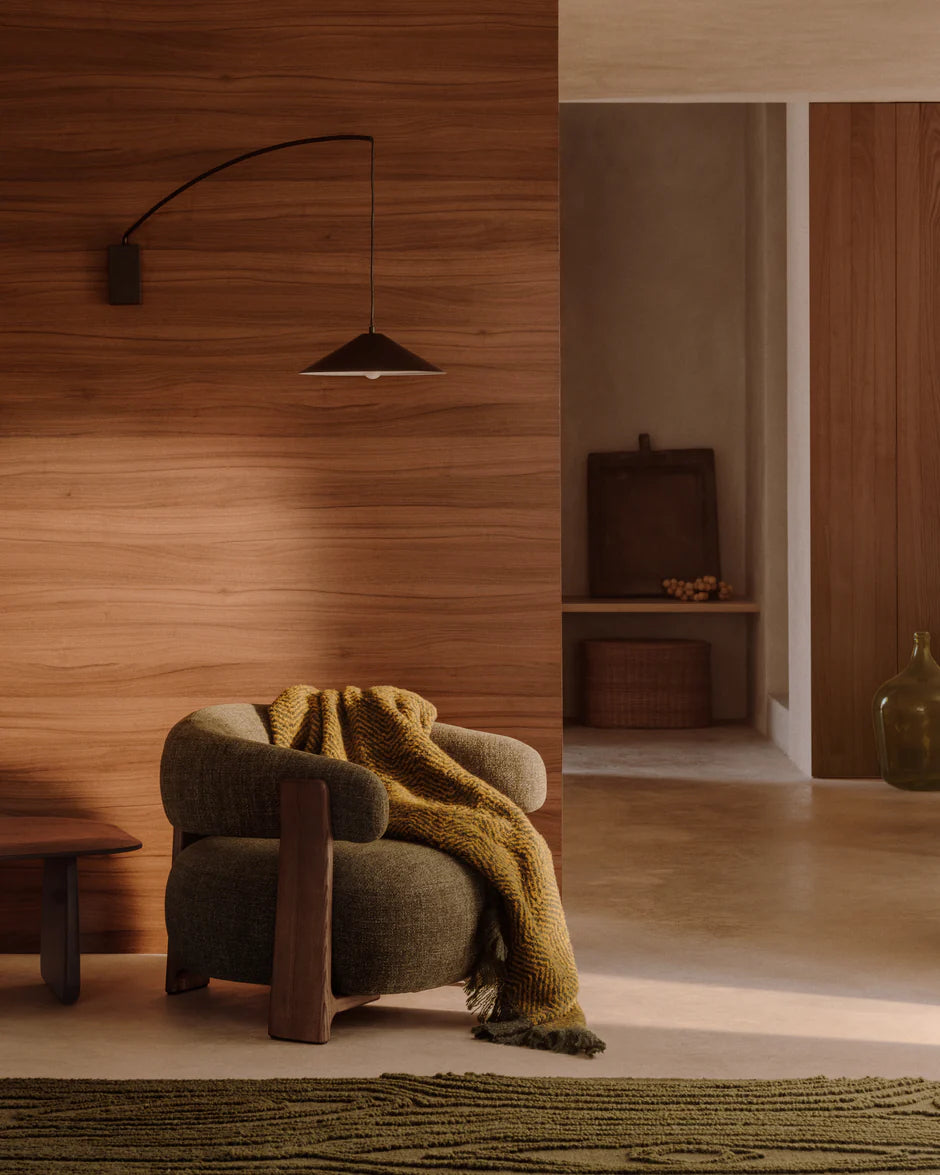 Fauteuil Granite is een synoniem voor tijdloze elegantie, geïnspireerd door de Scandinavische stijl van de jaren '70. Zijn stevige, afgeronde vormen en nauwkeurige afwerking geven de ruimte een unieke uitstraling. Bekleed met gerecycled polyester chenille, met een opvallende bicolor structuur in beige tinten, biedt het comfort en een subtiele esthetiek.