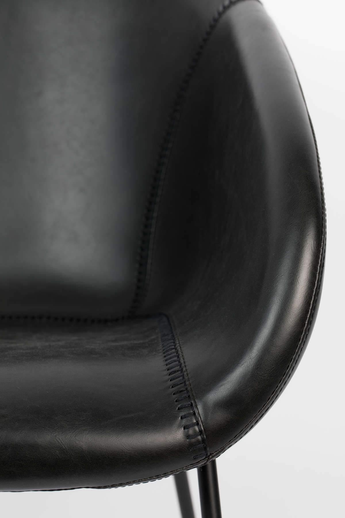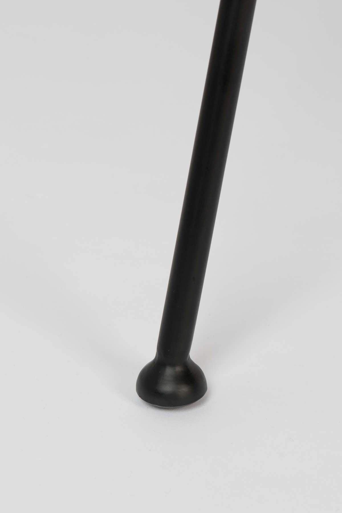 De elegantie van de fauteuil wordt benadrukt door stalen poten in zwart en het kenmerkende, zwarte bekleding. De fauteuil kan in elke ruimte worden geplaatst, ongeacht het type vloer. Op de voeten van de poten zijn plastic beschermers aangebracht, die schade aan het oppervlak voorkomen.