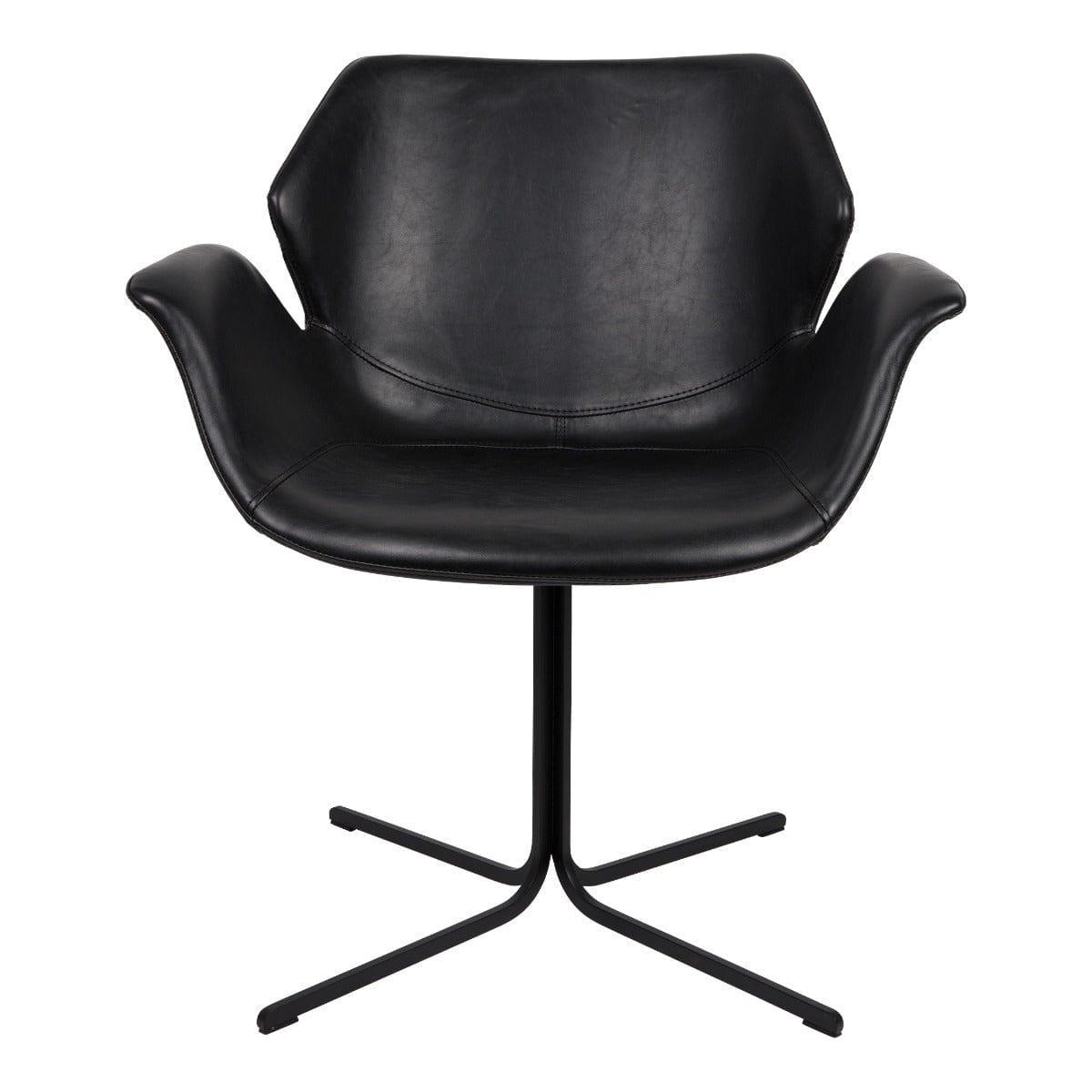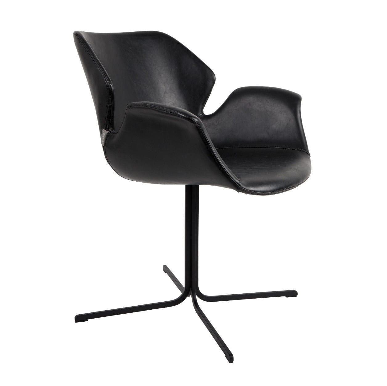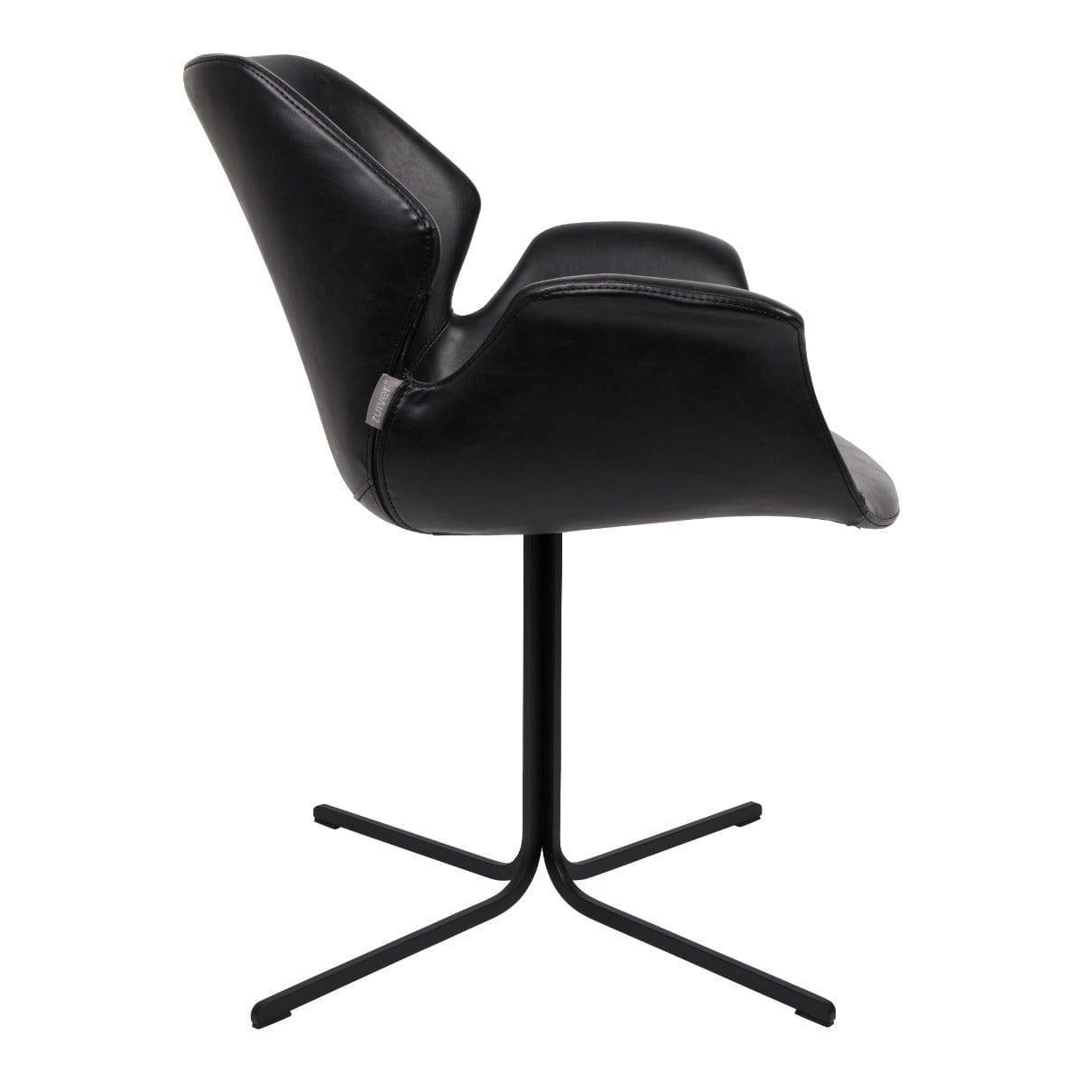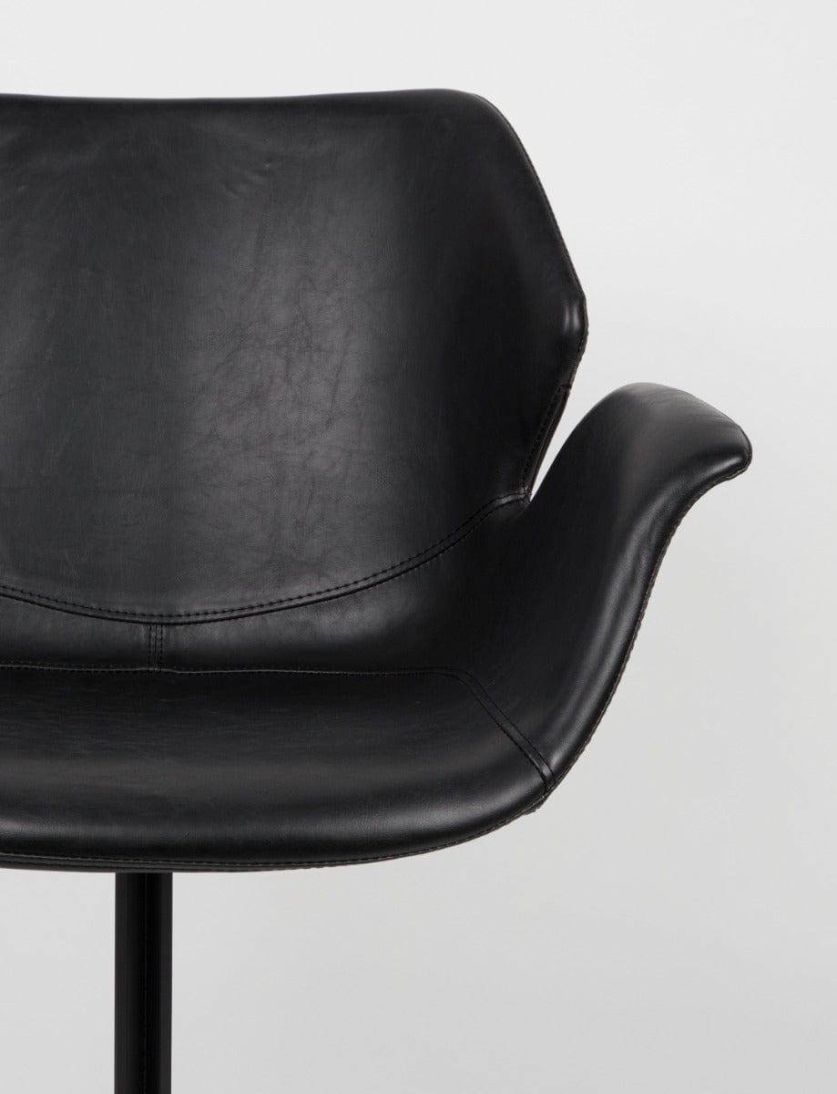 De zitting is gemaakt van PU-leer in de kleur zwart, terwijl de poten van metaal zijn, poedergecoat in zwart. Stabiliteit en gebruikscomfort worden gegarandeerd door de comfortabele armleuningen.