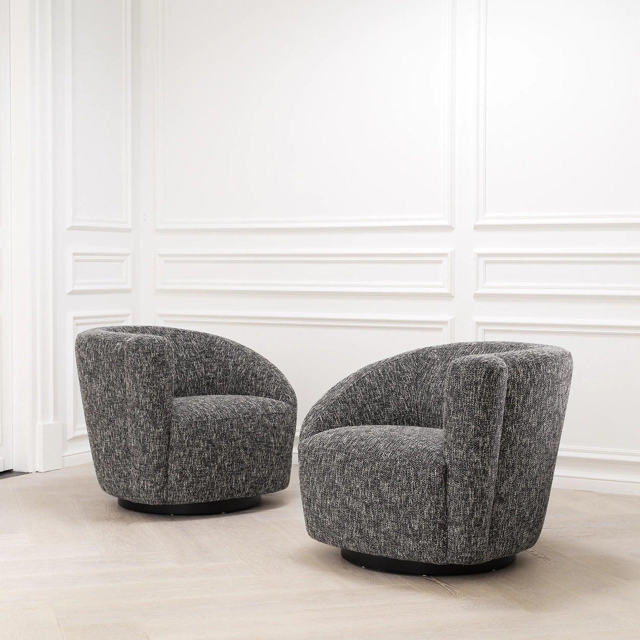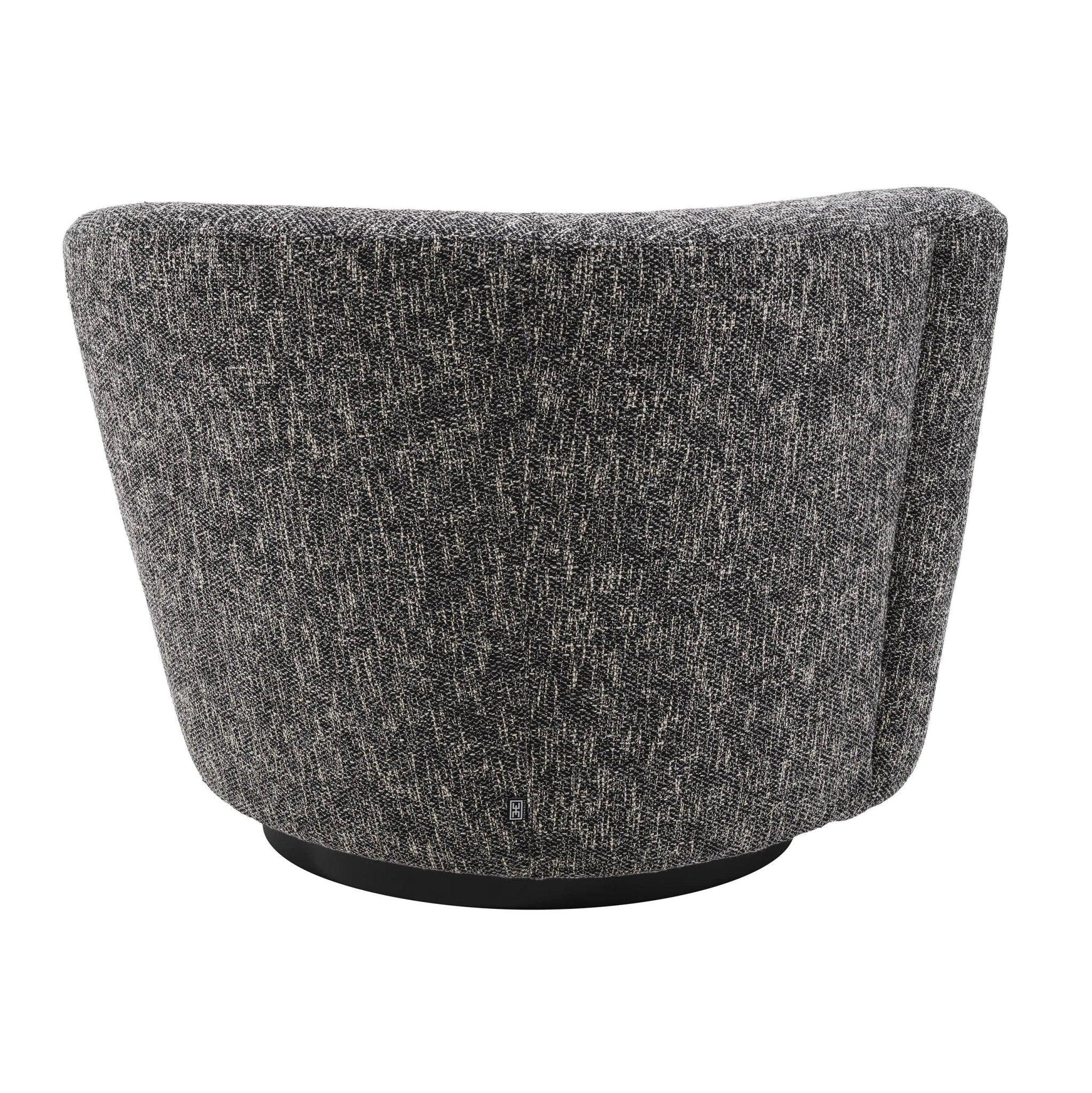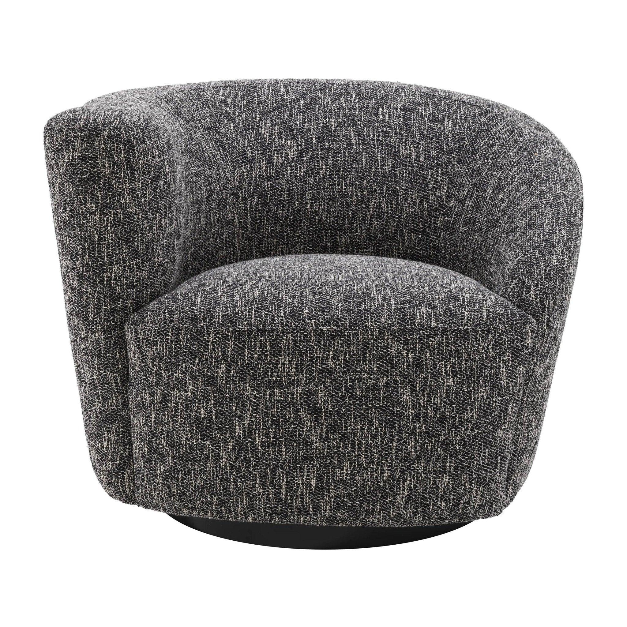 Grijze, gemêleerde stoel Colin maakt het mogelijk om interessante composities in de ruimte te creëren. De bekleding van natuurlijk materiaal Pausa garandeert comfort en kwaliteit, terwijl de zwarte draaivoet hem een moderne uitstraling geeft.