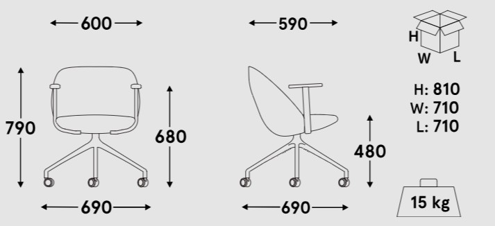 Draaitstoel Paralel met een laag rugleuning en een metalen basis met wielen voor zachte oppervlakken is een stijlvolle en functionele oplossing ontworpen door Yonoh Studio. Zijn organische, vloeiende vorm omarmt de gebruiker en creëert een comfortabele en privé ruimte, terwijl de lage rugleuning, hellend onder een hoek van 24°, zorgt voor comfortabele rugondersteuning. De draaibare metalen basis vergemakkelijkt beweging en bevordert interactie met de omgeving, en de wielen voor zachte oppervlakken verhogen de mobiliteit, waardoor het ideaal is voor ruimtes met tapijten of vloerkleden.