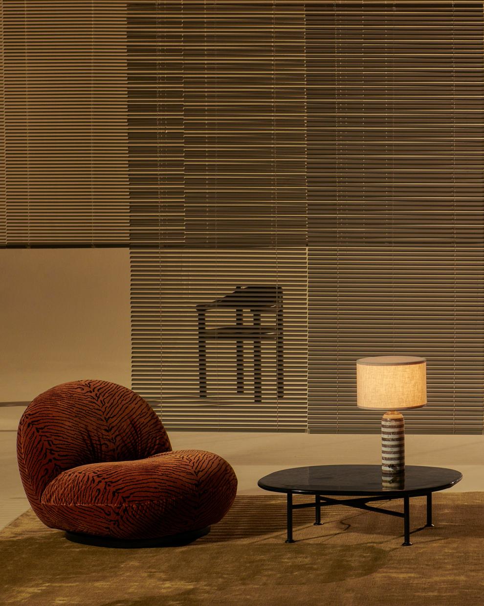 Gestoffeerde PACHA fauteuil met zwarte basis