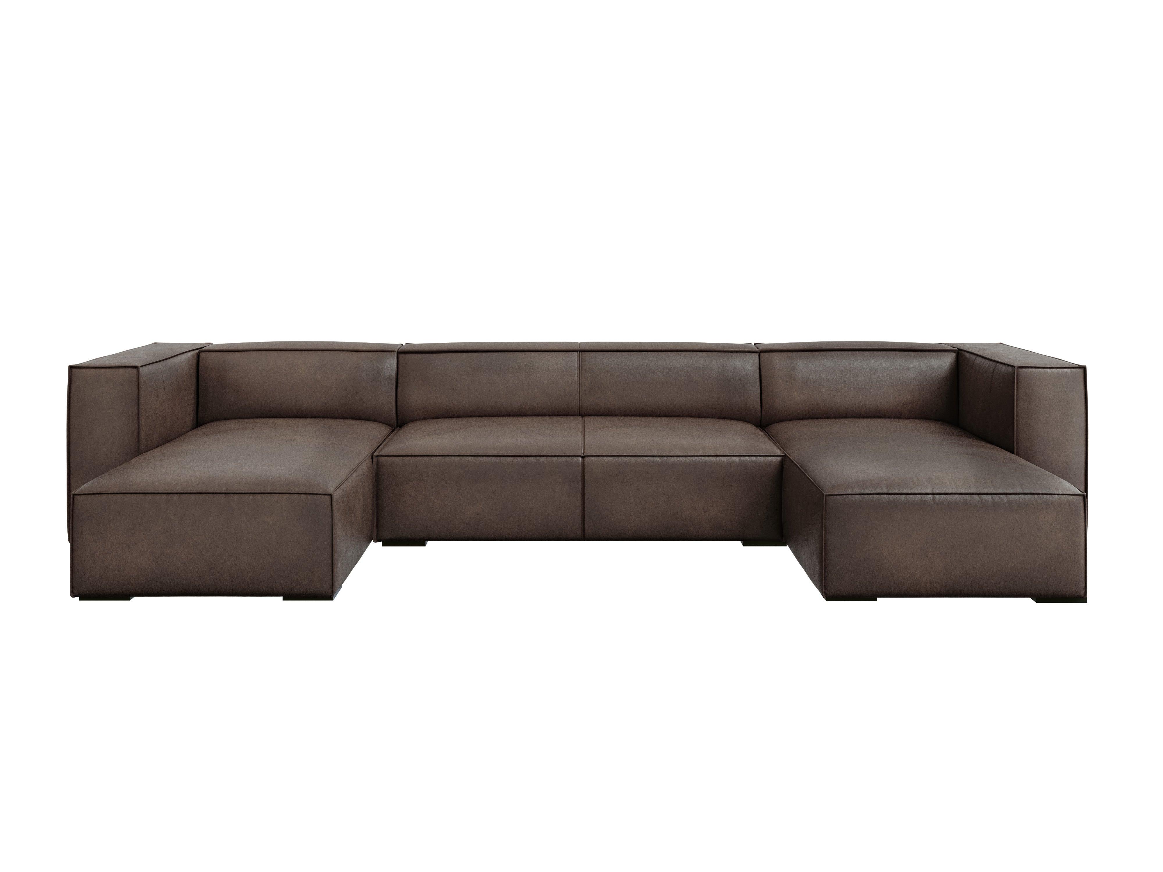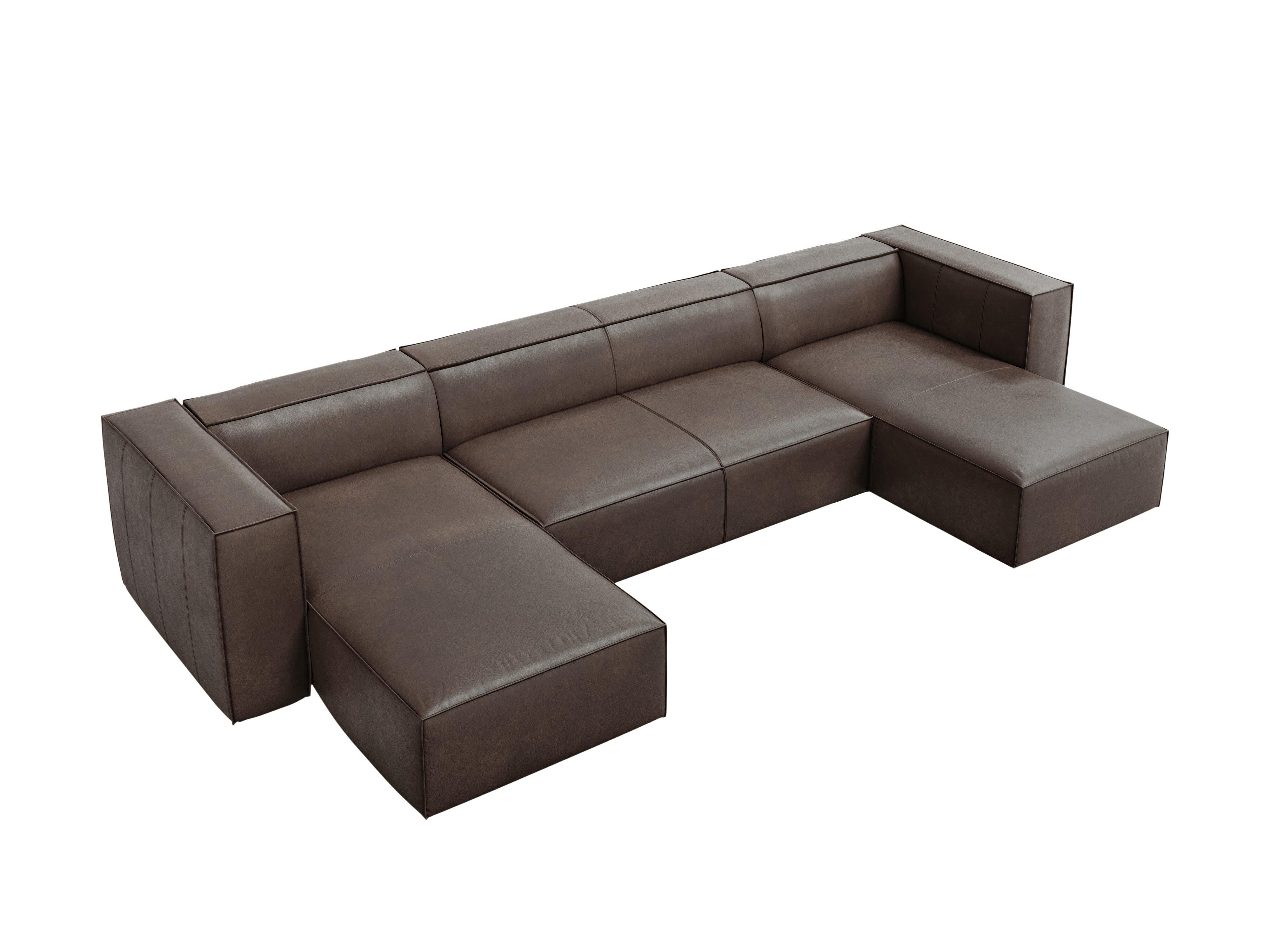 Olijfgroene bruine leren U-vormige hoekbank MADAME