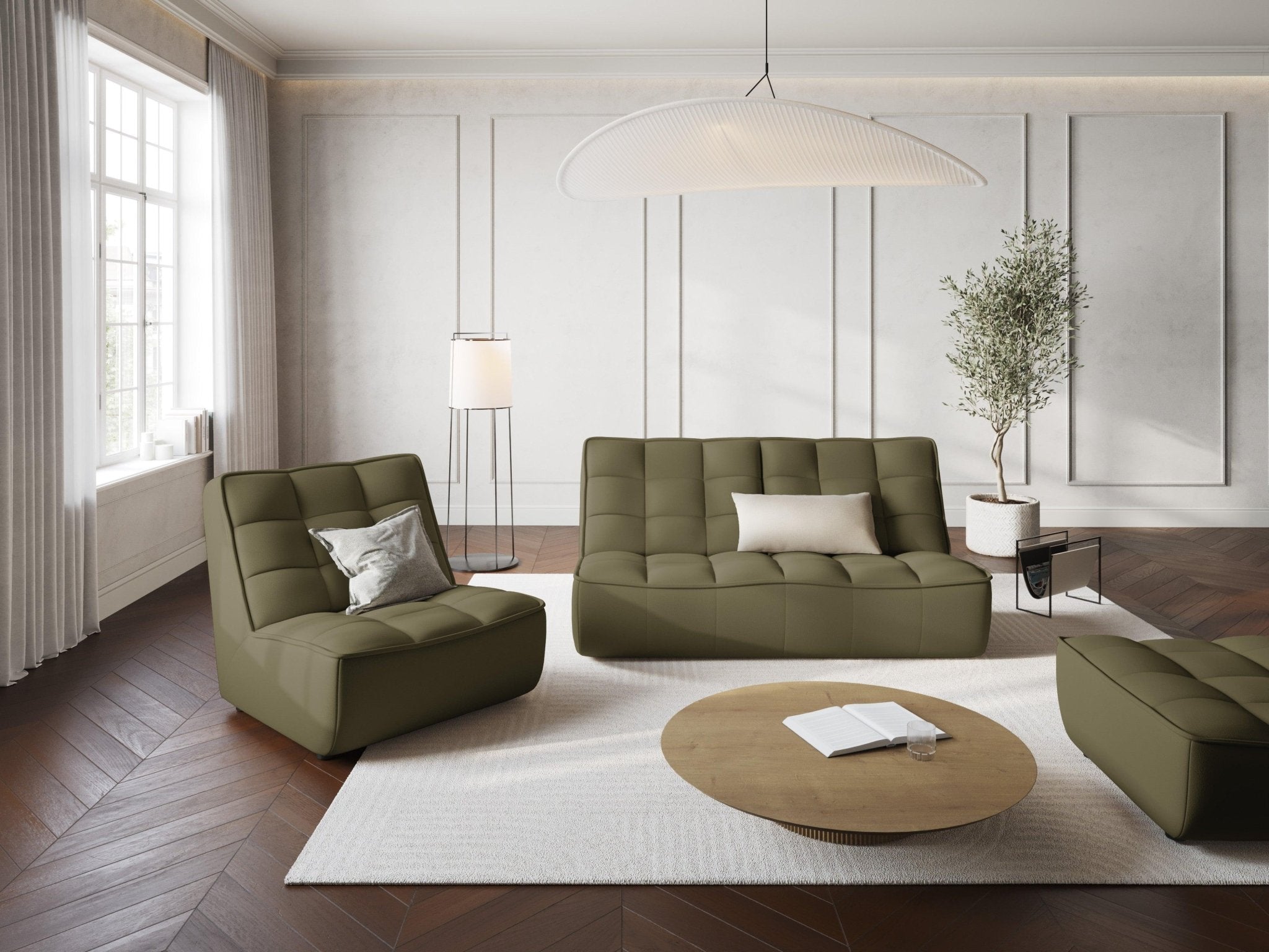 Olijfgroene leren fauteuil MONI