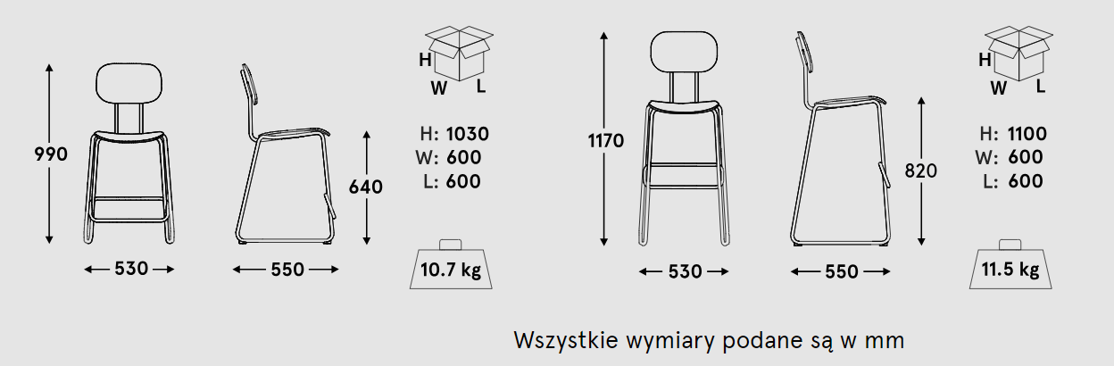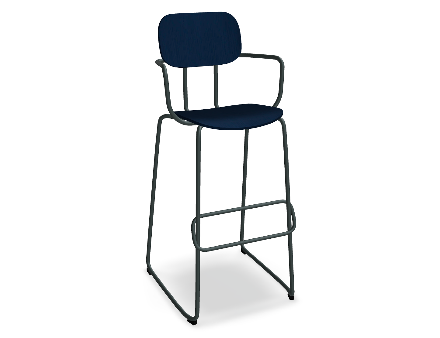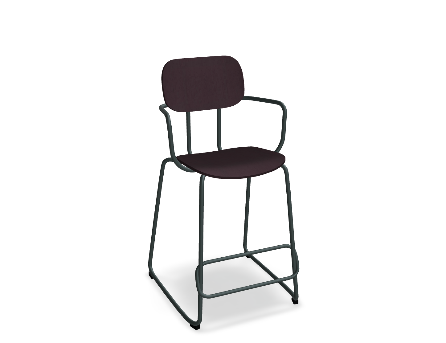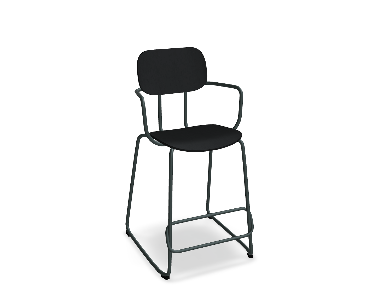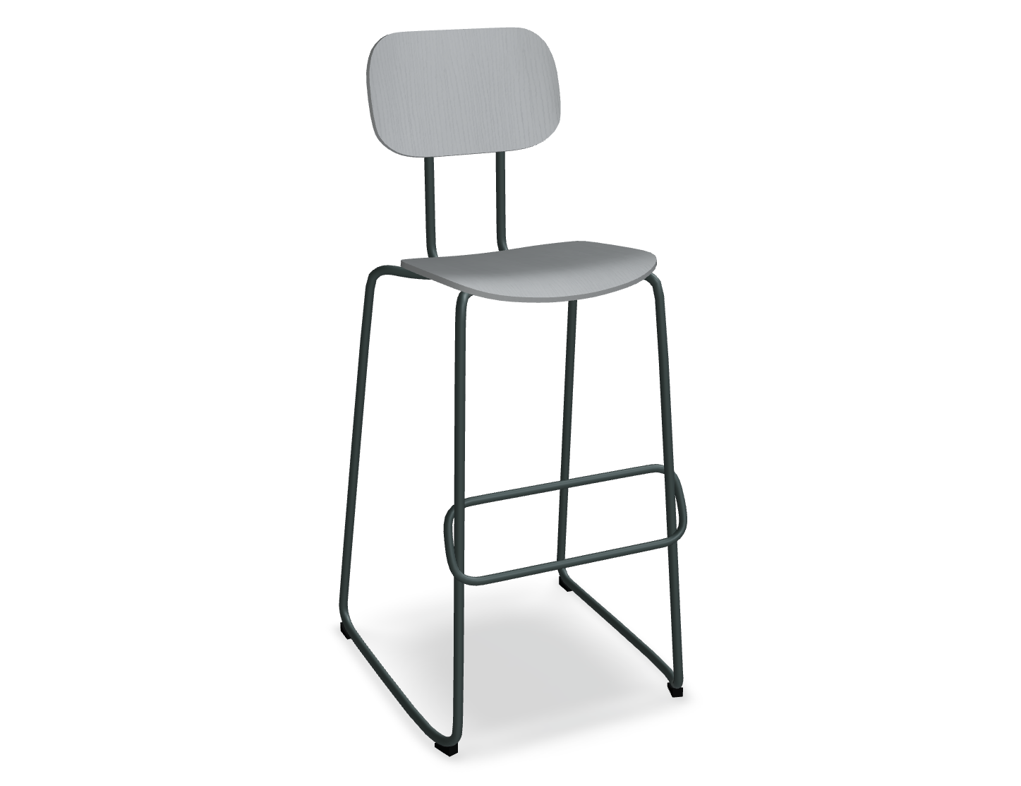 Podstawa - hoker wysoki, płoza metalowa, stelaż malowany proszkowo, wykonany z rury Ø18 mm, grubość ścianki 2 mm; sztaplowanie - max. 5 sztuk;