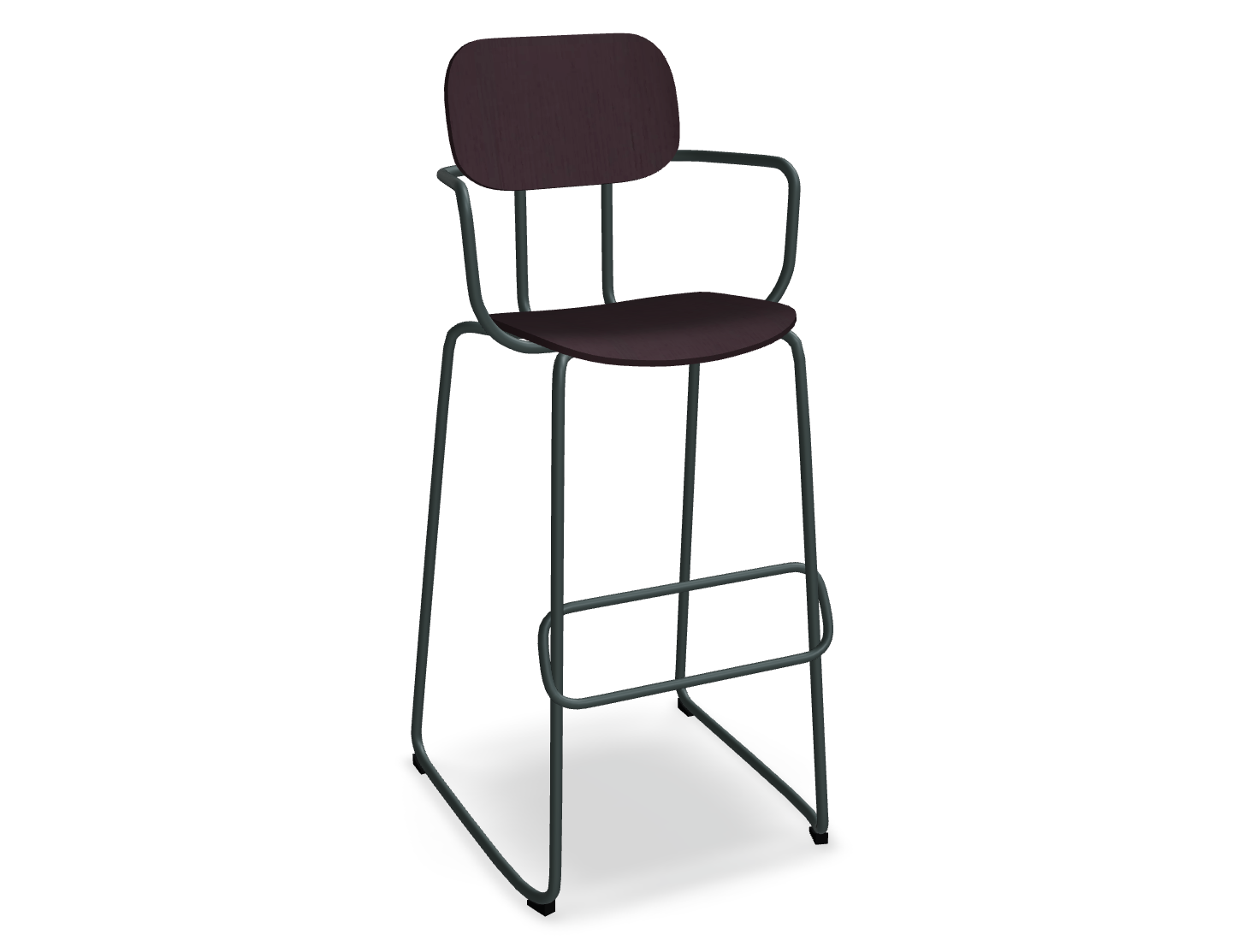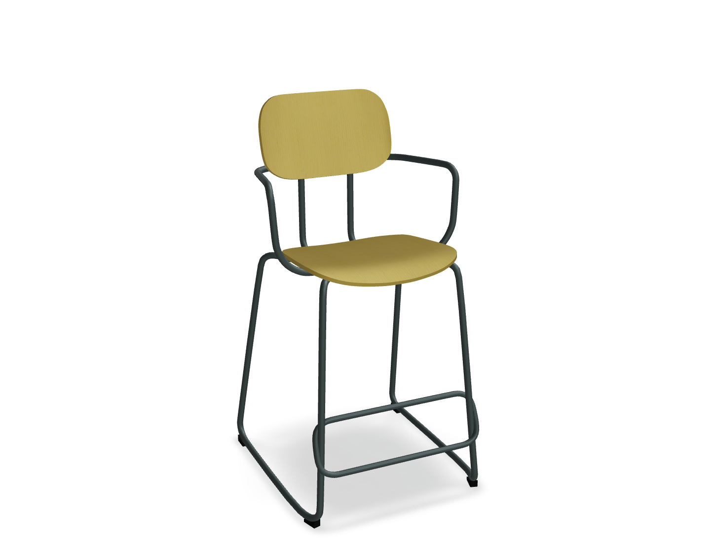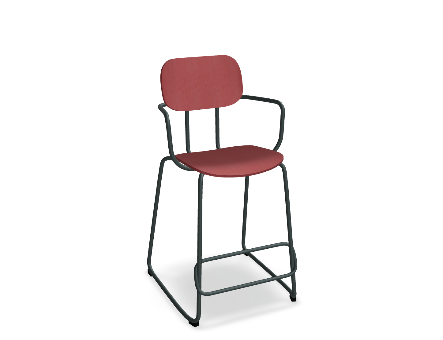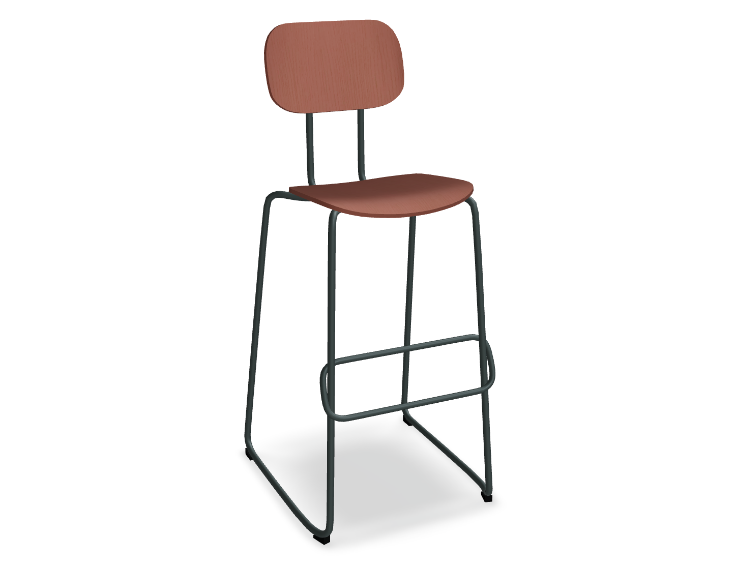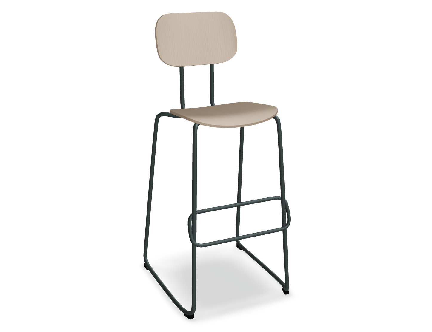 Het metalen frame in combinatie met een zitting en rugleuning van multiplex geeft het meubel een moderne uitstraling, benadrukt door een breed scala aan kleuren. De hockers kunnen tot 5 stuks gestapeld worden, wat het opslaan en het beheren van de ruimte vergemakkelijkt. De kruk is onderhoudsvriendelijk en ideaal voor dynamische, vaak veranderende indelingen in openbare ruimtes.