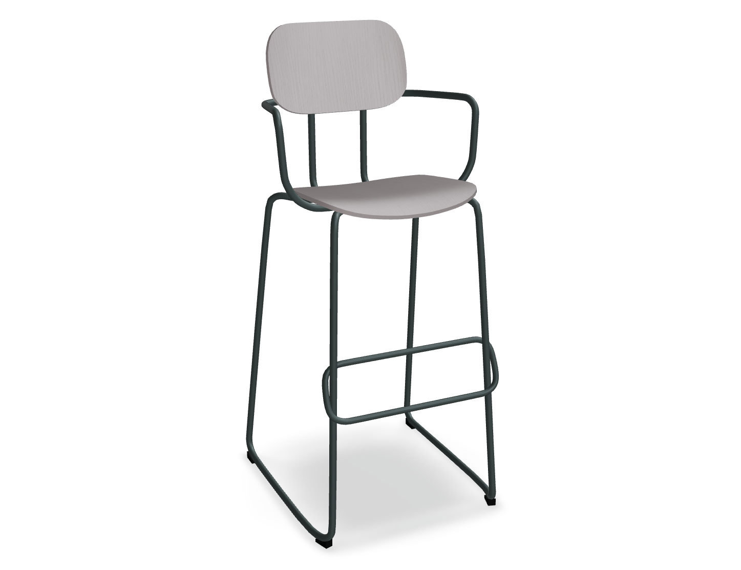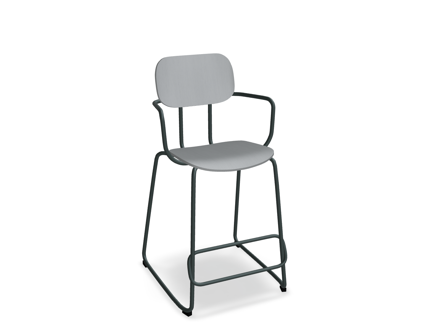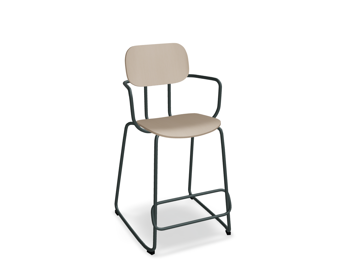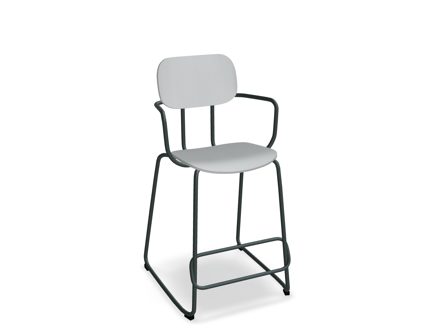Hocker New School, ontworpen door studio Form Us With Love, is een moderne herinterpretatie van de traditionele schoolstoel. Deze kruk is perfect voor kantoorrestaurants, bars, cafés en keukens met een hoge tafel. Verkrijgbaar in twee hoogtes, waardoor hij zich aan verschillende tafels kan aanpassen. Hij valt op door de geïntegreerde voetensteun en optionele armleuningen, wat het gebruiksgemak vergroot.