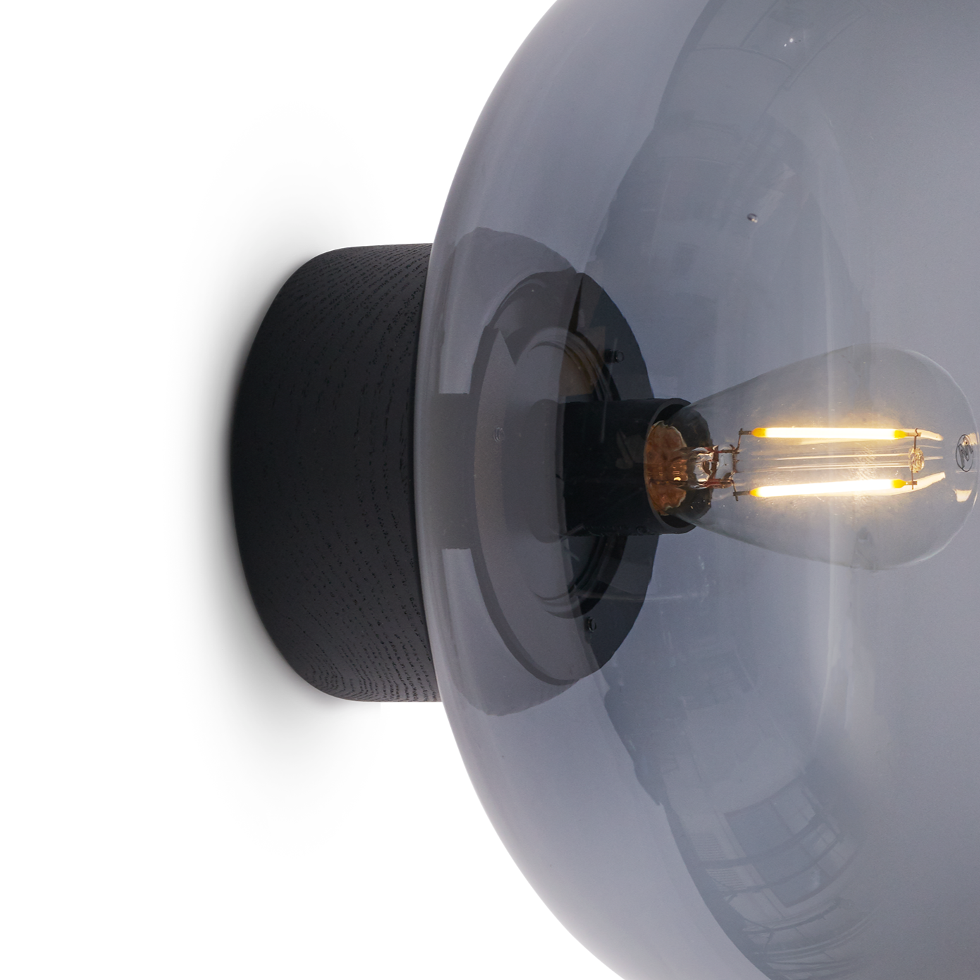 Wandlamp Karl-Johan met rookglas en een zwarte eiken basis is een elegante combinatie geïnspireerd op herfstwandelingen en natuurlijke vormen. De afgeronde kap van rookglas verspreidt subtiel het licht, waardoor een warme en sfeervolle ambiance in elk interieur ontstaat. De delicate, organische vorm van de lamp voegt zachtheid toe aan de ruimte, terwijl het tegelijkertijd een element van verfijnde moderniteit introduceert.