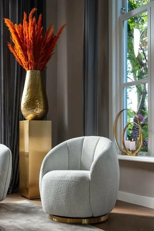 Roestvrij staal met een gouden afwerking creëert een opvallend en glanzend effect dat de uniciteit van deze kolom benadrukt. Het gladde oppervlak voegt elegantie en verfijning toe, wat perfect samengaat met verschillende interieurstijlen.