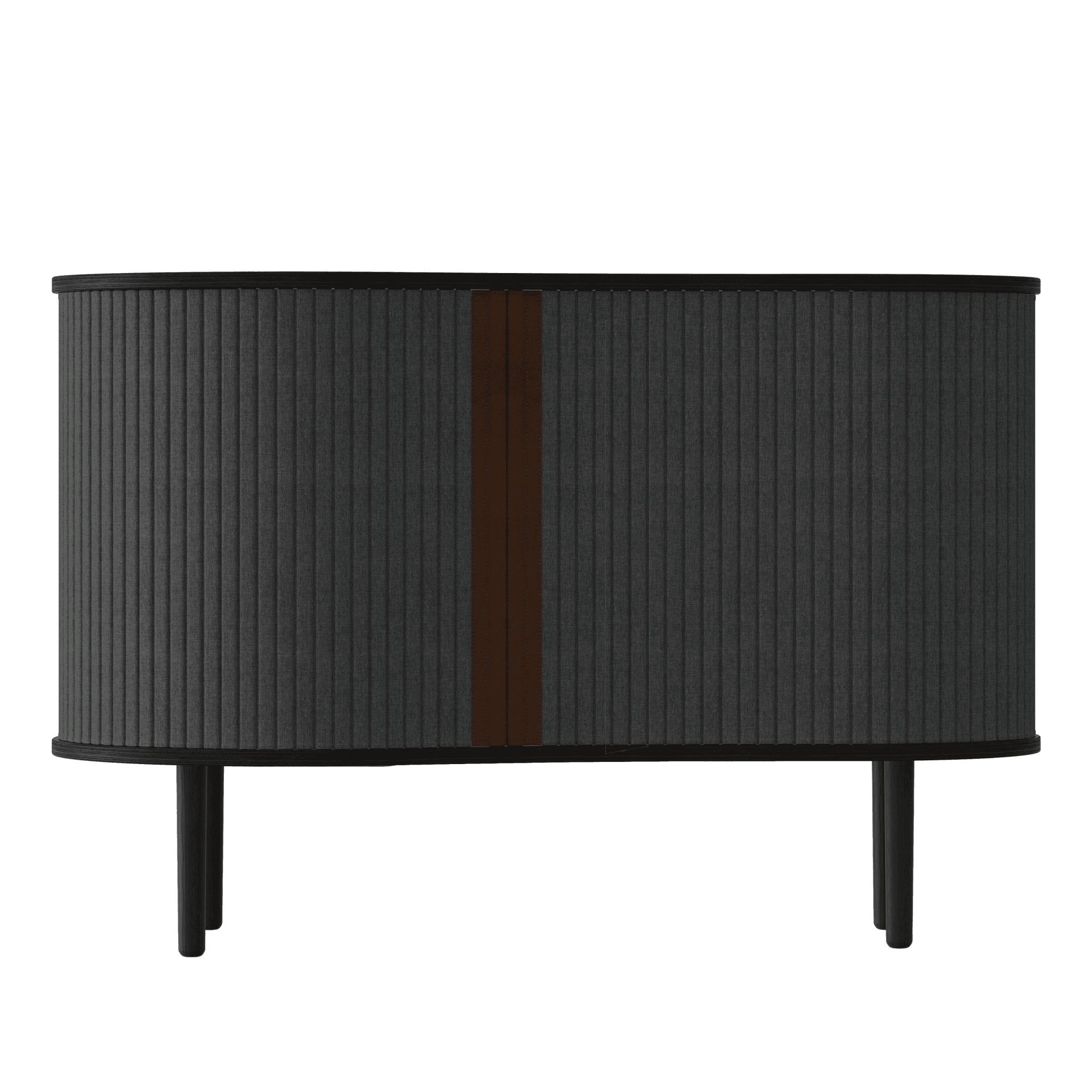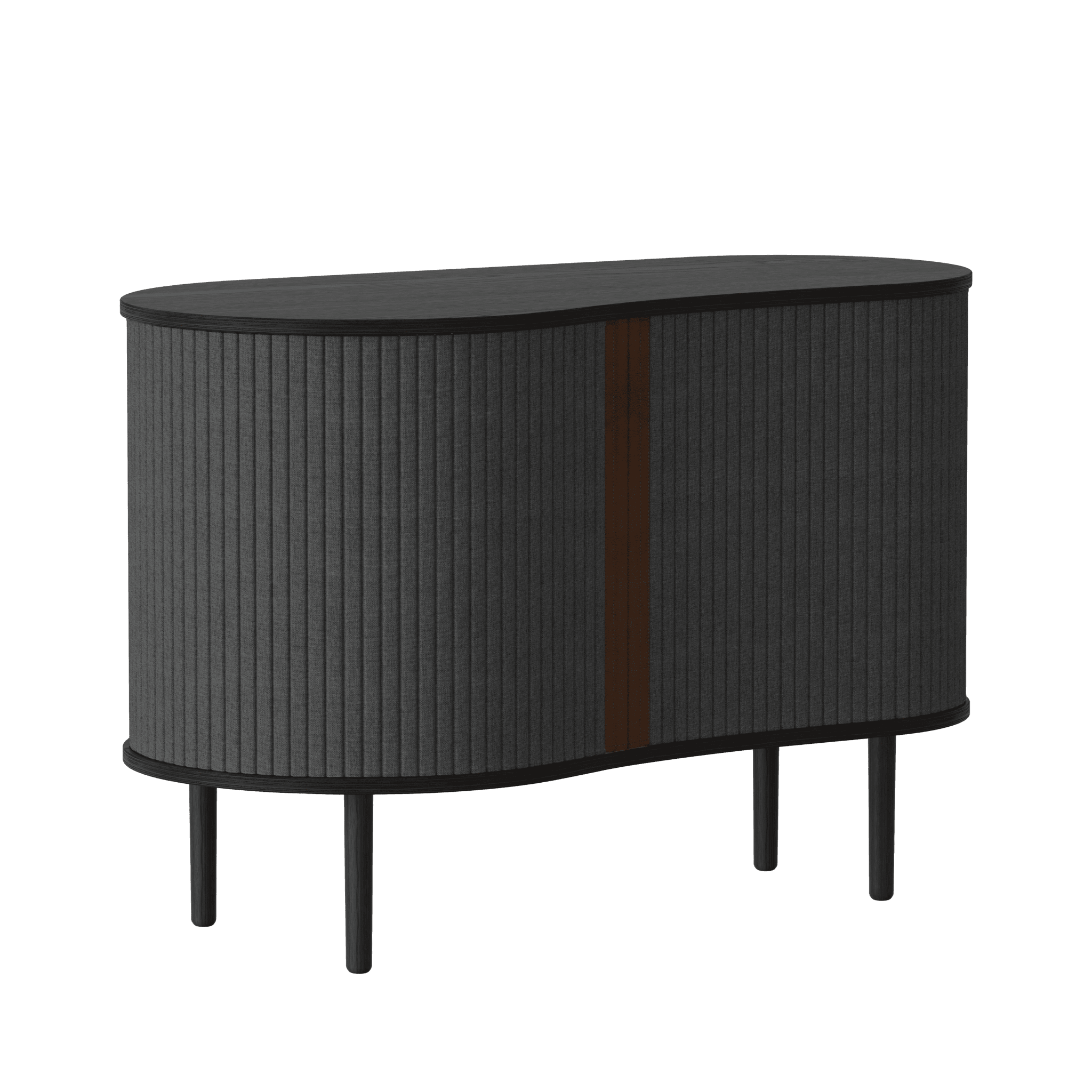 De commode is beschikbaar in drie opvallende kleuren: eiken, donker eiken en zwart eiken, met jaloezieën die verkrijgbaar zijn in zorgvuldig geselecteerde tinten van de stof Horizons, die volledig uit gerecycled materiaal bestaat. Belangrijk is dat de jaloezieën verwisselbaar zijn, wat betekent dat u ze gemakkelijk zelf kunt veranderen, waardoor u het meubel een nieuwe uitstraling kunt geven en het ontwerp kunt verfrissen zonder een geheel nieuw meubel te hoeven kopen. Hierdoor bespaart u niet alleen wereldwijde hulpbronnen, maar verlengt u ook de levensduur van het meubel.