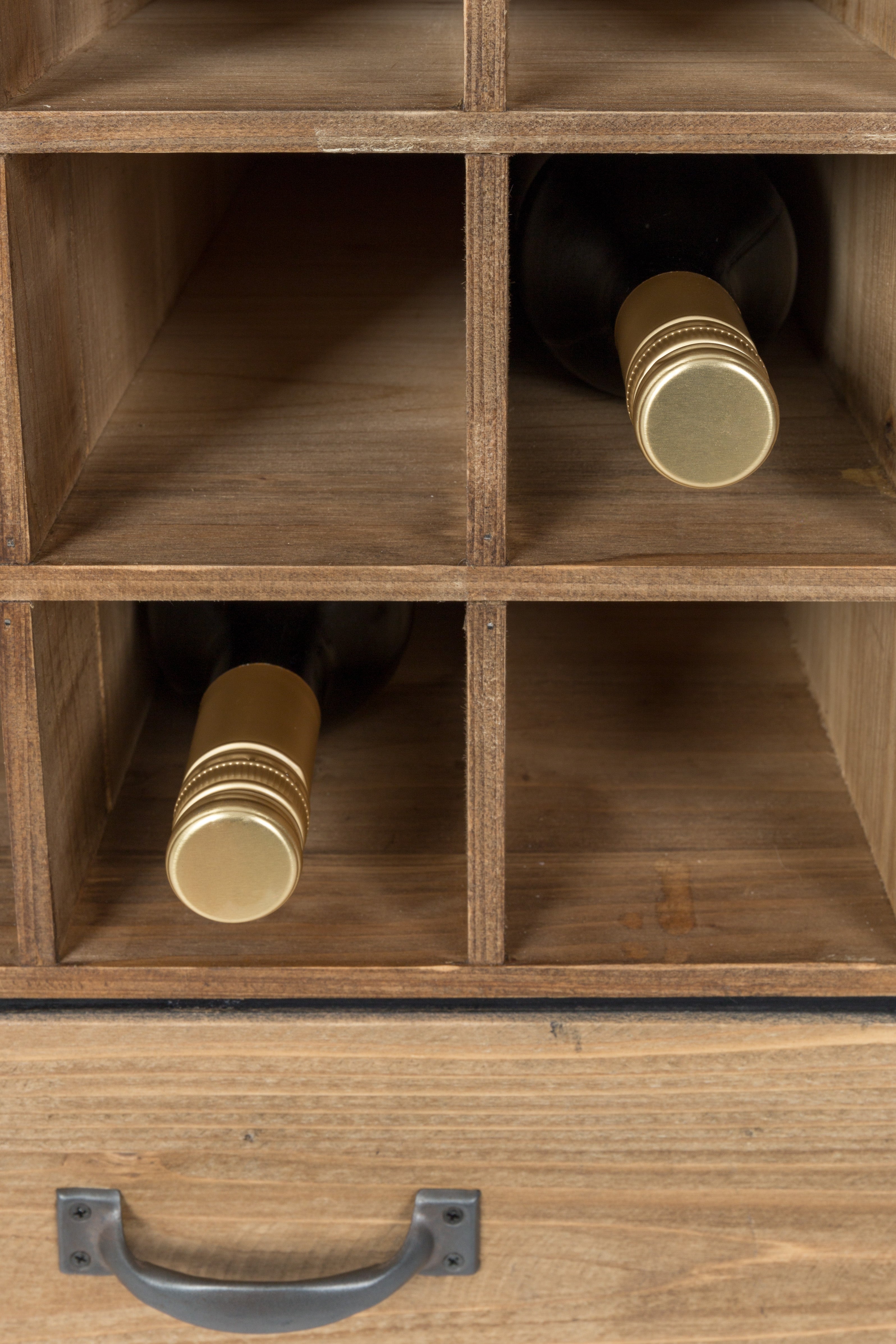 Materiał: drewno jodłowe (góra i przegródka na butelki), MDF, żelazo