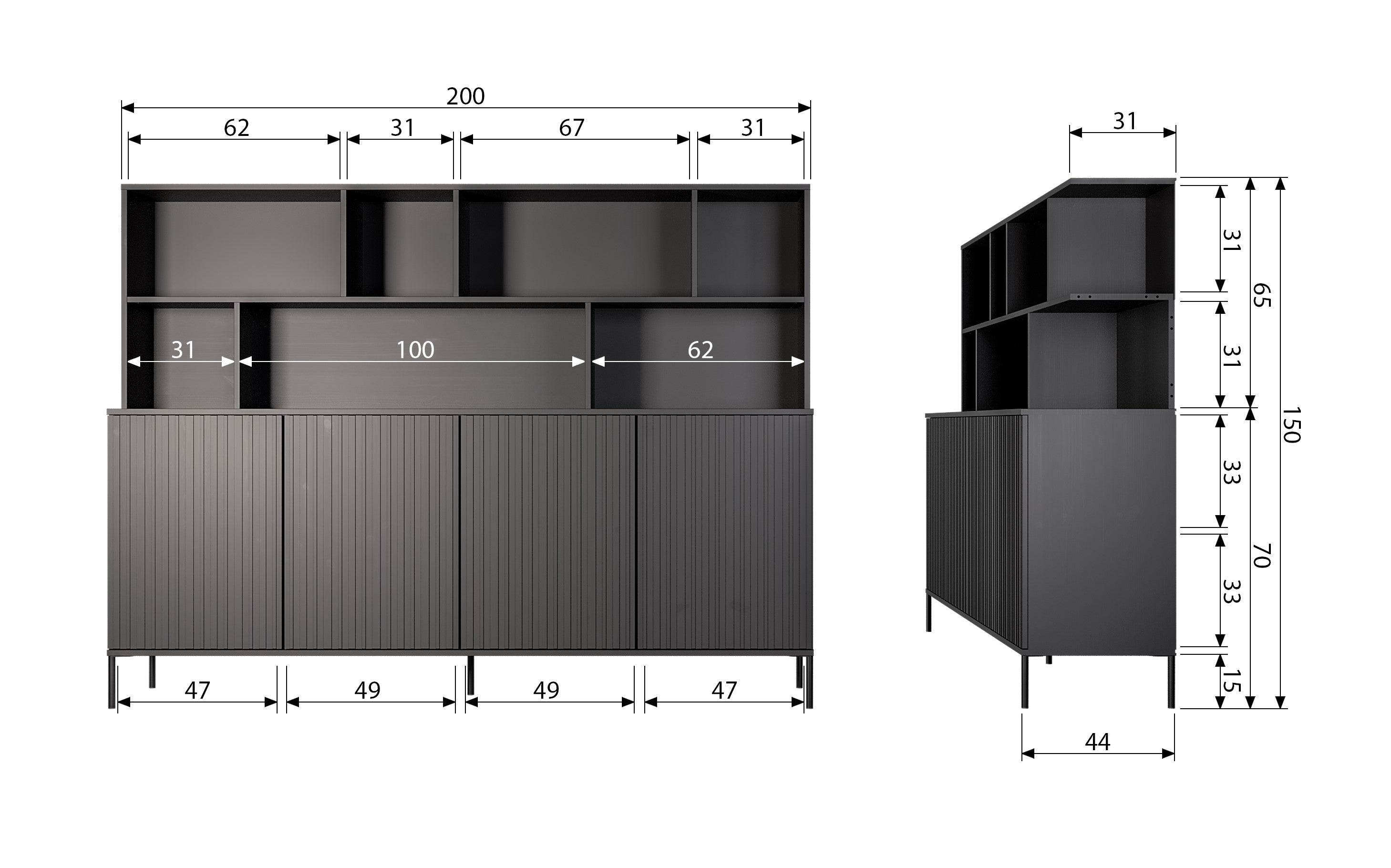 Wymiary przegródek: 32,5 x 47,5 x 41 cm (wysokość x szerokość x głębokość)