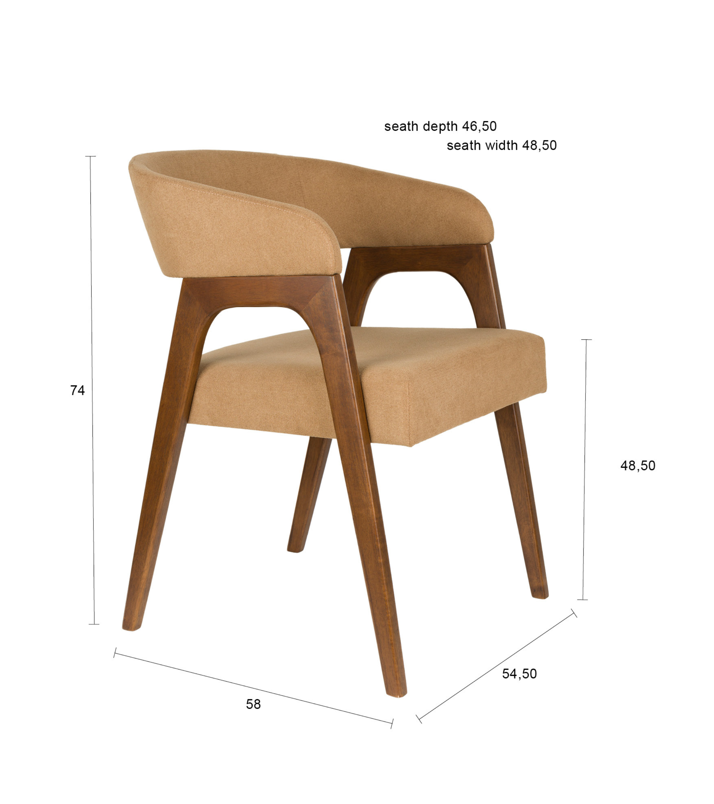 Stoel Adamello is een stijlvolle terugkeer naar de klassiekers - perfect voor een eetkamer waar een warme, gezellige sfeer heerst. De zitting en rugleuning zijn bekleed met een gladde stof in een subtiele beige tint, die prachtig samengaat met de donkere basis van rubberhout, gekleurd in walnoot. Het kenmerkende contrast tussen de afgeronde vormen van de stoel en de geometrische lijnen van de Adamello tafel zorgt ervoor dat het geheel intrigerend en tijdloos oogt.