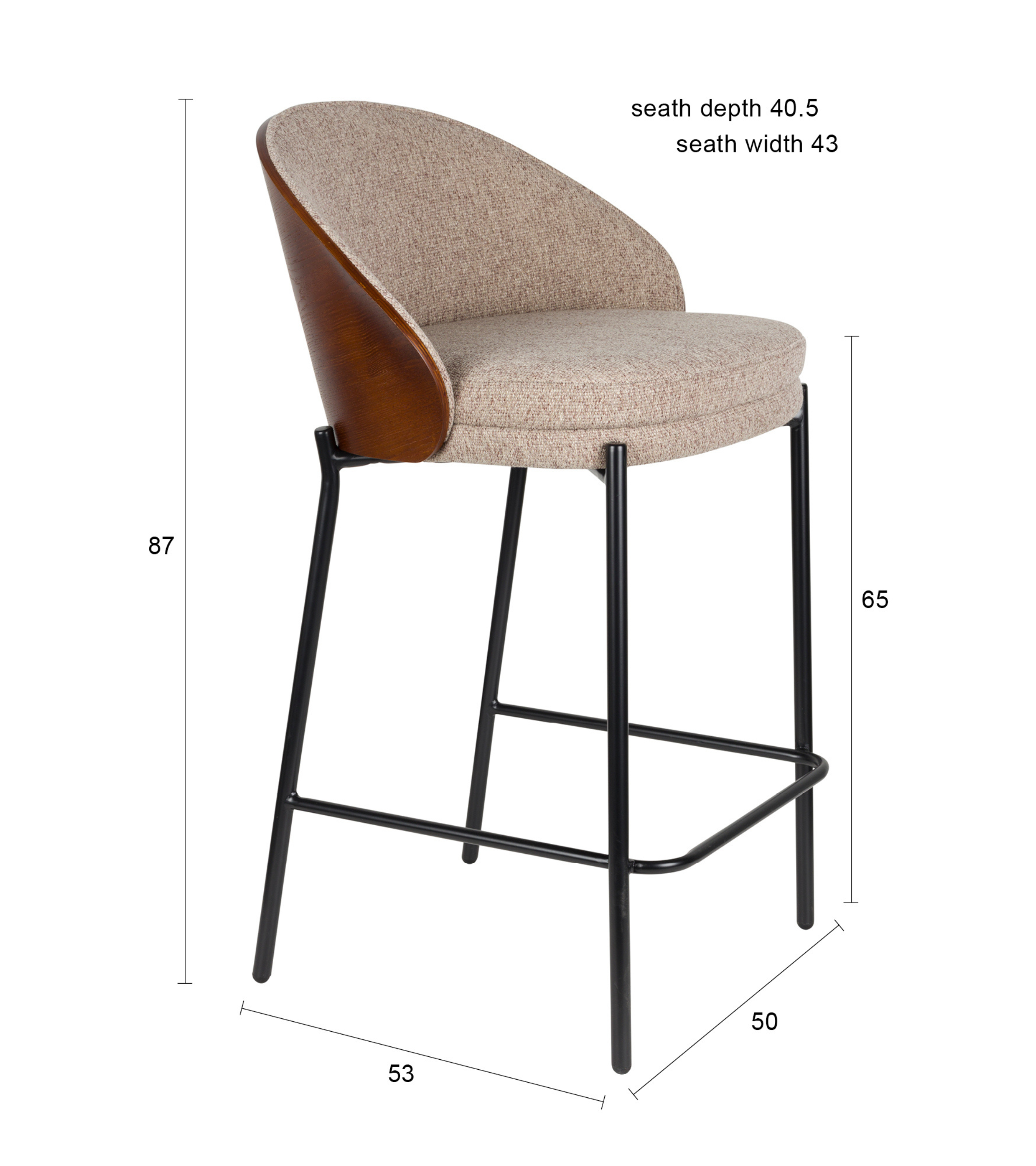 Wilt u een verfijnde sfeer met een vleugje stijl uit de jaren '50 en '60 in uw interieur brengen? Barkruk Rodin is de perfecte keuze. Het ontwerp is een uitstekende combinatie van klassiek en modern: de licht afgeronde rugleuning van gebogen hout in een notenhouten afwerking contrasteert prachtig met de lichte, geweven bekleding van de zitting, wat een elegante en gezellige uitstraling creëert. Slanke, zwarte metalen poten voegen een gevoel van lichtheid en moderniteit toe.
