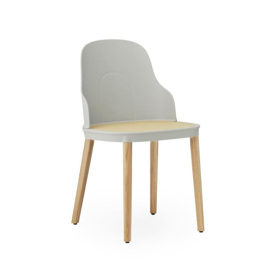 Stoel ALLEZ warm grijs met riet en eiken basis